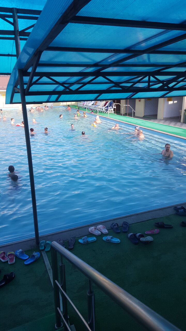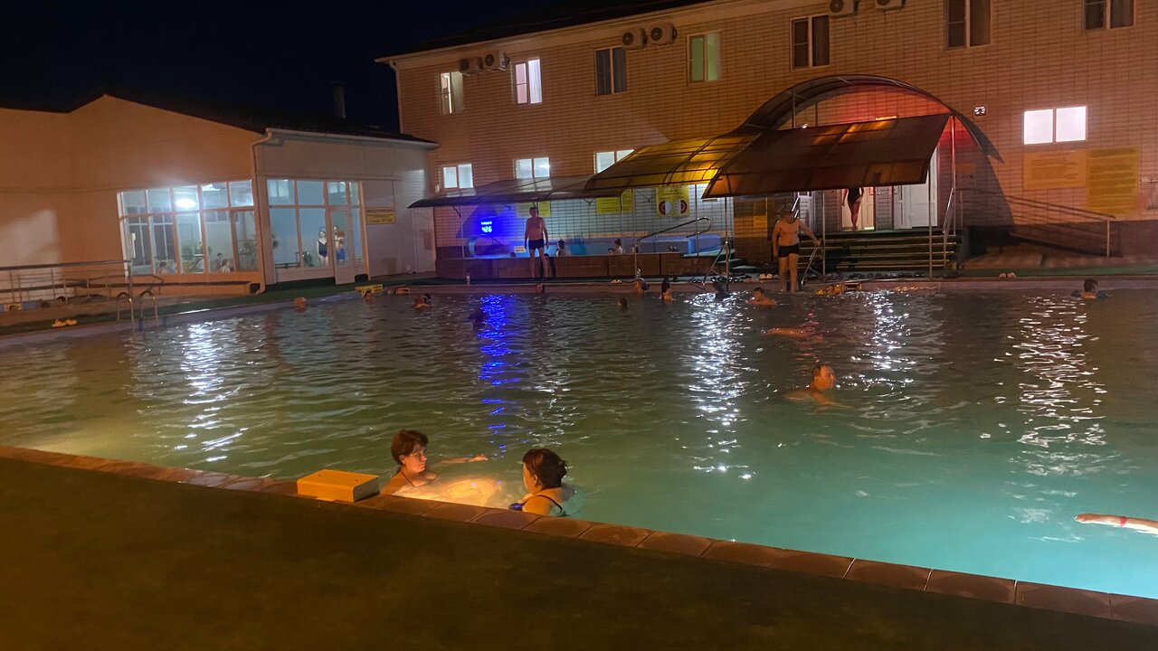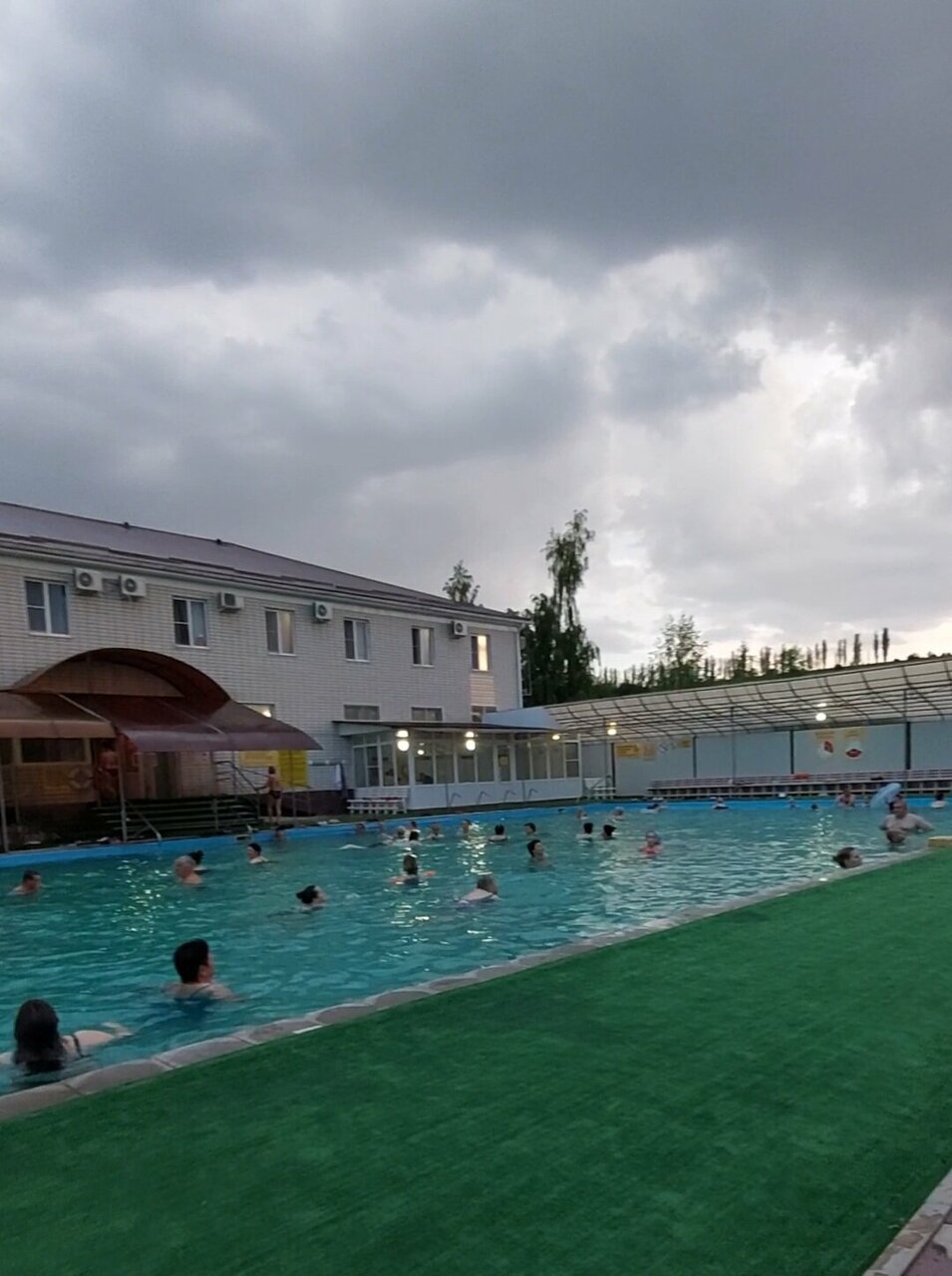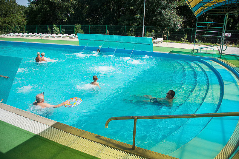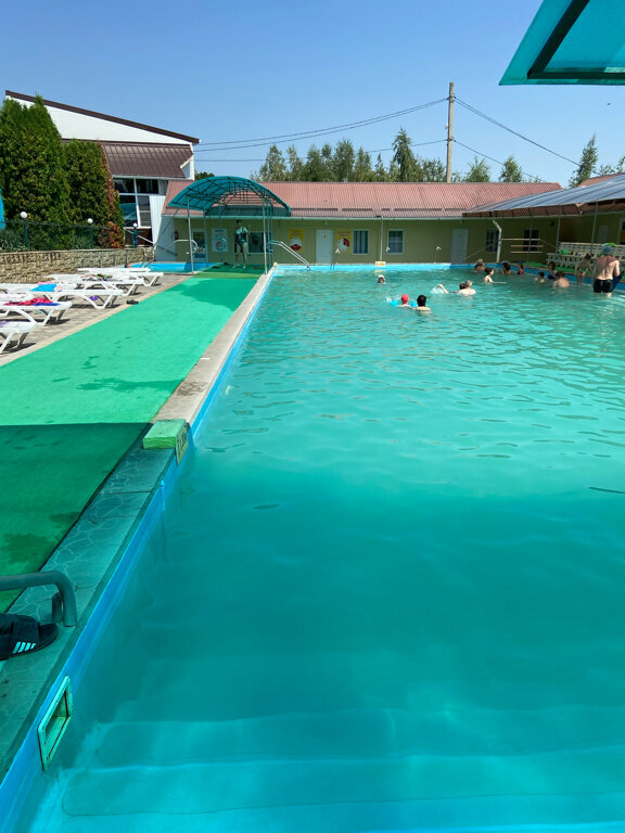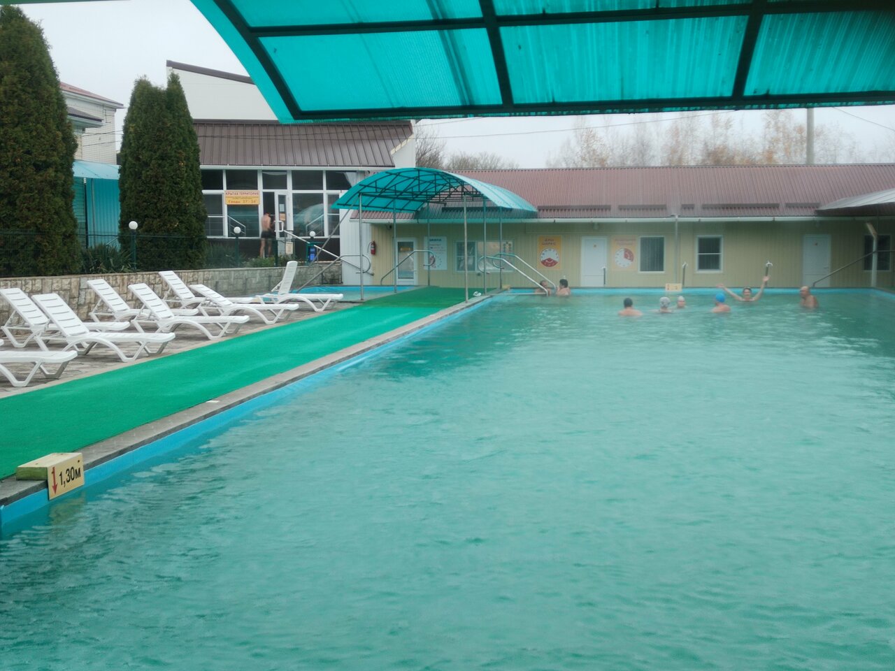 Посещаем это место не первый раз. Бассейнов несколько, вода чистая , от горячей до холодной. Есть крытые бассейны. Везде работают разные гидромассажеры. Есть чем позабавиться. Раздевалки большие, есть душ, туалет, фен . Территория ухоженная, есть детская площадка. Две бесплатные парковки . Столовая прилично и недорого. У нас ребенку понадобилась медицинская помощь, которая была оказана очень быстро и профессионально! Огромное спасибо!