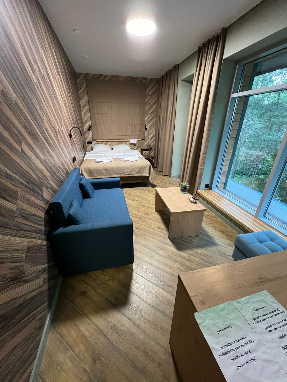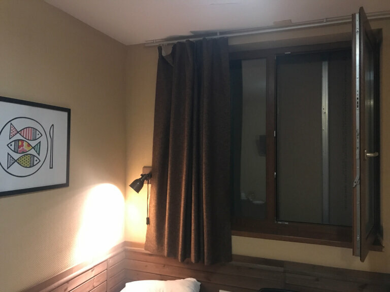 Единственный большой плюс — удобные кровати и подушки. Ну и местность красивая, хотя ее видно не было, так как окна замурованы, о чём надо было предупредить заранее, я считаю, а не при заселении. Было душно и резкий рыбный запах в помещении. Ещё один жирный минус — не закрывалась дверь туалета, большая щель оставалась (на фото), просто кошмар. Ещё и фен не работал. Завтрак — не понравился, было невкусно (сырники, блинчики и сметана), может остальная еда вкусная, как пишут ниже, но мы ничего не съели в итоге.