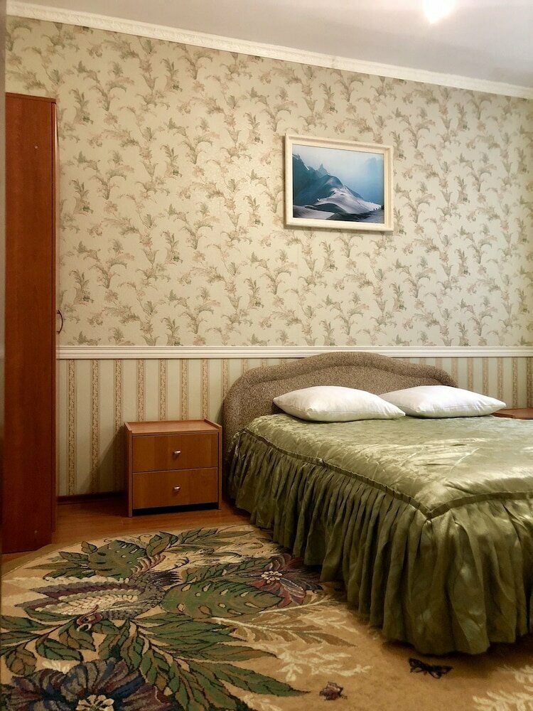 Номер Люкс продуман в каждой детали. В практичной гостиной приятно отдохнуть на диване и посмотреть телевизор. В спальне можно воспользоваться письменным столом с удобным креслом или расслабиться на широкой двуспальной кровати.