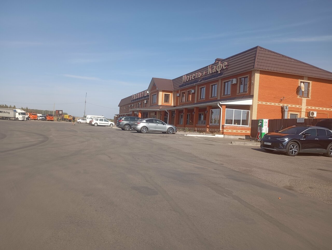 Кухня отвратительнаяповара не могут отличить омлет от яичницы, так же как и каши рисовую от пшённой. Бутерброды маргарин с самым дешёвым сыром. В гостинице не останавливался, поэтому сказать ничего не могу. Стоянка для грузовиков неасфальрованая, как и большинство стоянок в принципе. Но заезжать можно. Есть 2 шиномонтажа. Есть колодец с водой. Вода неплохая, можно пить сырой.