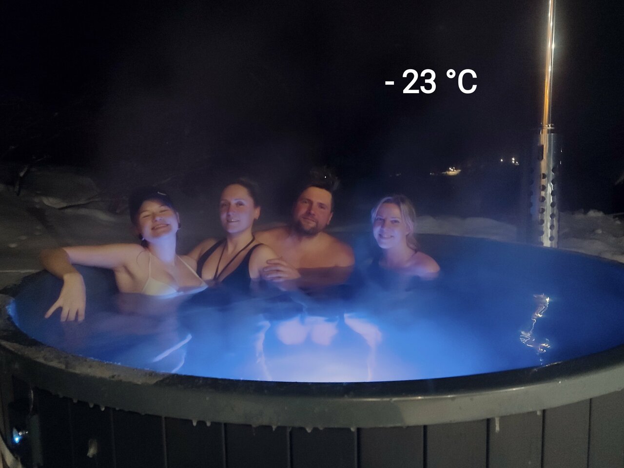 С небольшим опозданием хочу оставить отзыв об отдыхе в этом чудесном месте (ох уж эта каждодневная суета не даёт написать даже пару строк). Так вот, отдыхали компанией по случаю дня рождения и по совместительству 14 февраля )) дом — выше всякий похвал он одинаково шикарный как внутри так и снаружи где сливается отдых на природе с городским комфортом продумано все до самых мелочей (спальные места, полностью оснащенная кухня, на улице мангал, место для парковки) и на сладенькое — это сауна и купель на улице (для всех людей, которым не рекомендованы сауны — есть решение ). А возлежать в горяченькой водице с бокалом чего нибудь вкусненького отдельный вид удовольствия Резюмируя, с уверенностью могу сказать — это то место, куда хочется вернуться