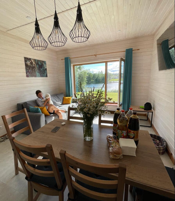 Восхитительный дом. Всё продумано для удобства гостей. Вплоть до тостера, посудомоечной машины с таблетками, посудой, прекрасным отельного типа постельным бельём и настолок. Из гостиной открывается красивый вид на озеро. В доме тепло и уютно. На территории детская площадка и мангал. Рядом есть магазины пятёрочка, кб. Однозначно рекомендую