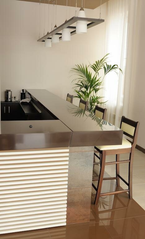 Мы снимали отдельно стоящий коттедж, с гаражом. Были проездом, переночевали, но хотелось задержаться по дольше. Нам выслали по ватсапу меню и мы выбрали ужин, приехали, ужин нас уже ждал. Комплимент от отеля три бутылки вкусной водички. Во дворе растёт виноград. Всё очень понравилось. Надеюсь ещё вернёмся в это местечко.