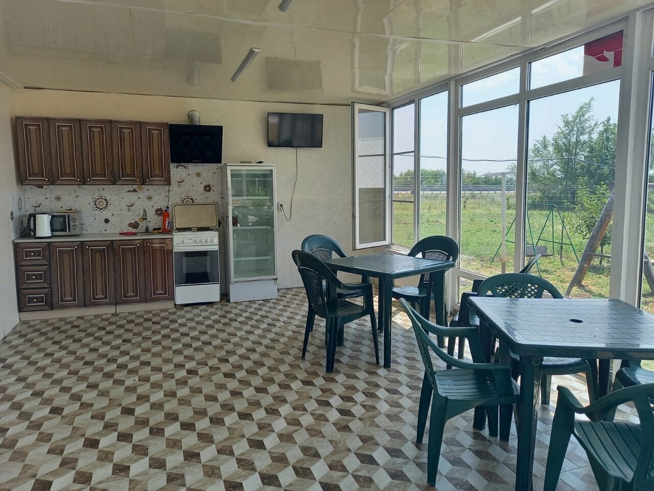 Всё ОЧЕНЬ чисто! Есть общая столовая с набором посуды, чая-кофе и макарончиков) Приветливые хозяева! В номерах кондиционеры, туалет-душ, телевизор.