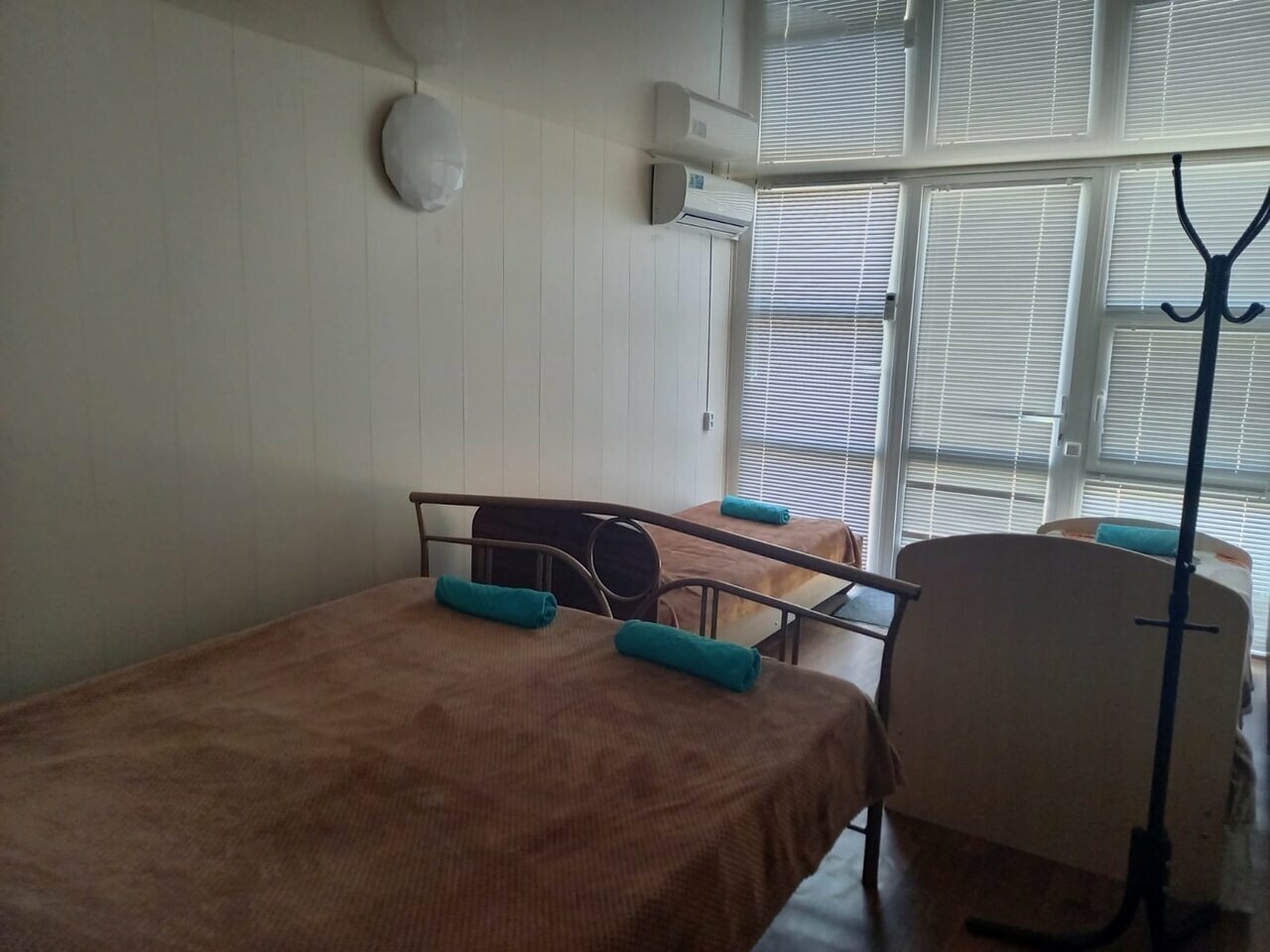 Номер чистый, кондиционер, туалет, душ. Это плюсы. А теперь минус. Поменяйте матрасы, невозможно спать, после долгой дороги хочется нормально лежать, а не с воткнутыми пружинами в спину. Поставьте в номер электрический чайник, с утра кофейку попить. Так себе место за такие цены.