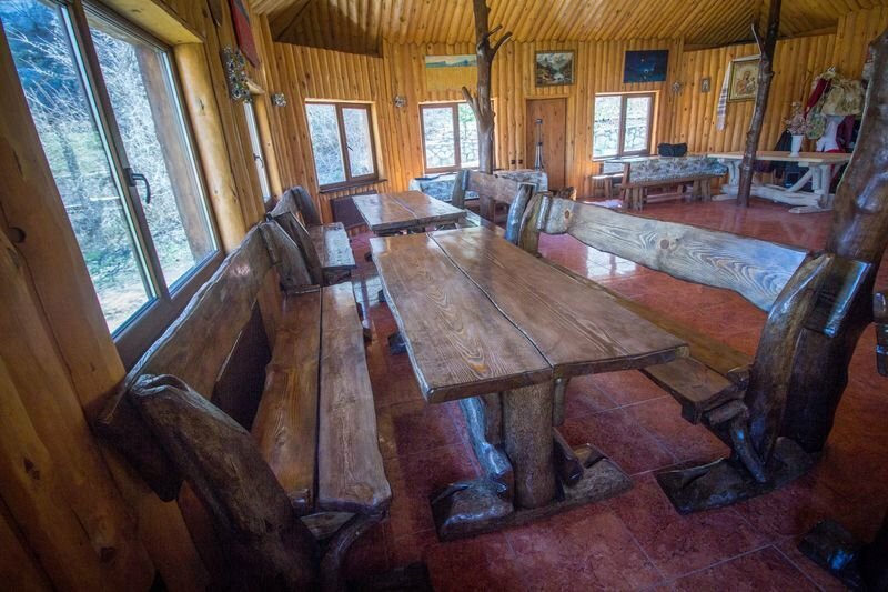 - Развлечения для детей и взрослых (шашлыки, рыбалка).; Большая территория, скалы вокруг.; Атмосферность, ручная мебель в номерах.; Бассейн с родниковой водой.; Красивое место, живописная природа.