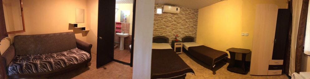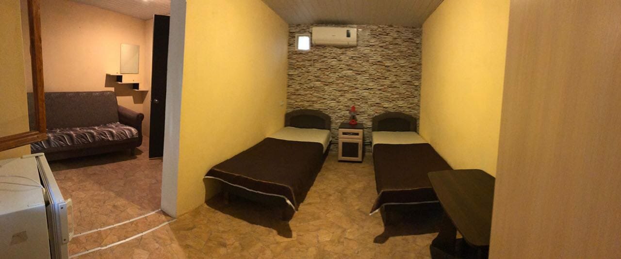 Гостевой дом находится близко к морю. Номер чистый, есть всё необходимое. Вкусная, домашняя еда. Чистая, ухоженная территория, очень много зелени ( гранатовые деревья, много кустов роз). Очень вежливый персонал. Рекомендуем всем, кто хочет отдохнуть от городской суеты!