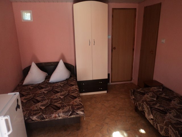 гостевой дом находится на второй береговой линии, к пляжу нужно идти через дорогу по переулку между домами. Море Азовское, мутноватое и не очень красивое. Вообще не рекомендую данную местность для отдыха. Асфальта нет в радиусе 12 км. На улице пыль и дышать свежем воздухом не получится, прогуляться или развлечься особо тоже. Цена на номера завышена — мебель и сантехника старые, душ работал с перебоями (из крана идёт соленая вода), постельное белье чистое, но застирано до дыр. Свет и электричество по вечерам заканчивается, так стабилизаторов нет а нагрузки на маленькое село огромные. Впечатление от проживания сглаживает только очень вкусное трех-разовое питание. Мы платили 2500 за сутки за трёх местный номер эконом с кондиционером.
