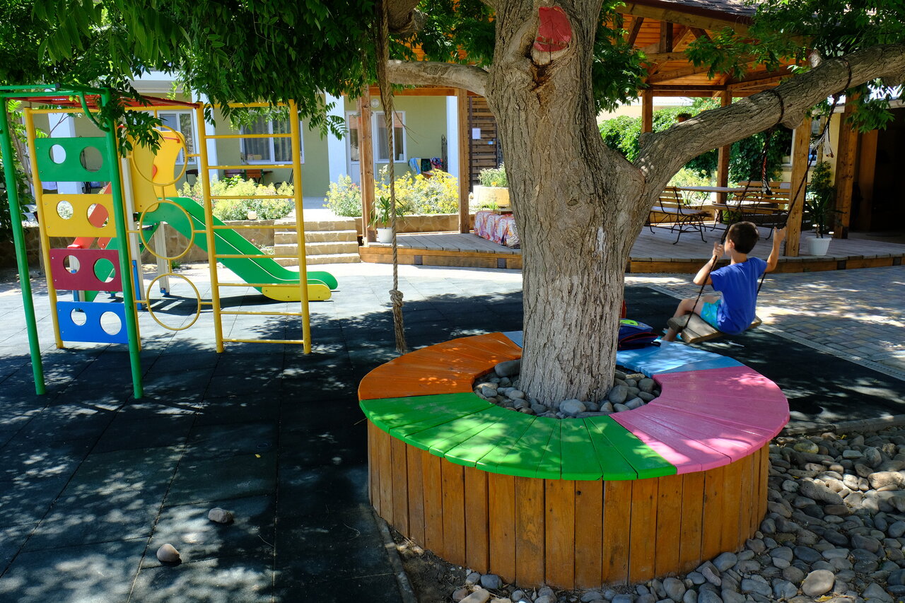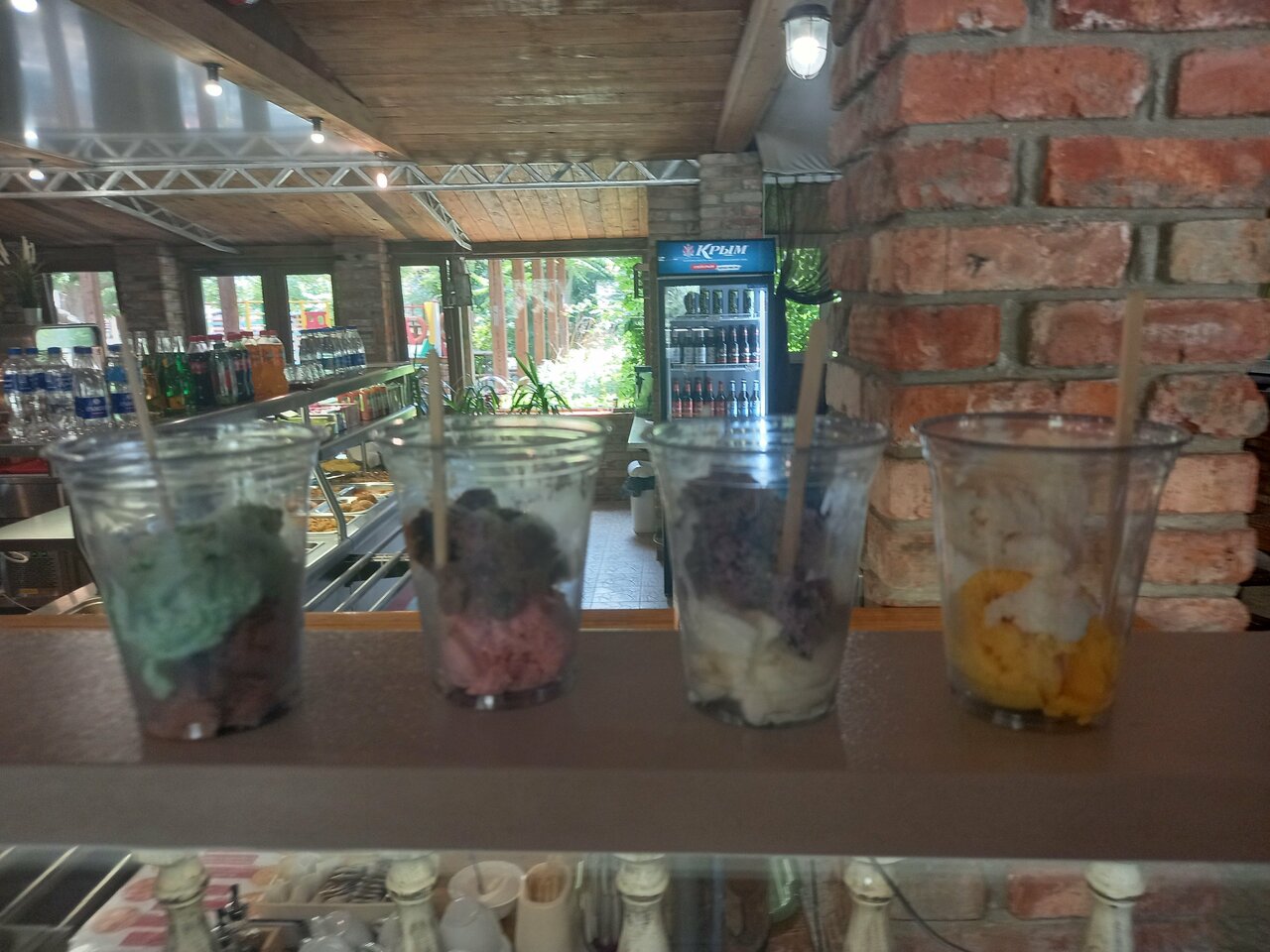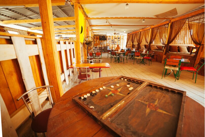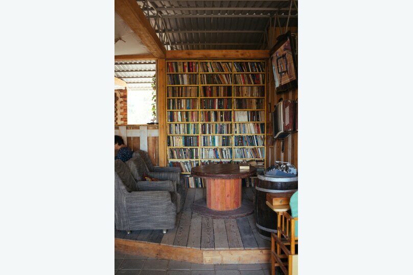 Прекрасное место для всей семьи! Как отель: душевная атмосфера, уютный двор, дети сразу же знакомятся и играют вместе, мы застали детскую дискотеку, но кажется, она бывает регулярно))) есть качели для малышей, песочница, настольный теннис, для взрослых — мангалы. Тут даже библиотека своя есть! Как кафе: очень вкусно и очень вменяемые цены! И вот ни разу, сколько мы обедали здесь, у меня не было ни одной изжоги ! Для меня это прямо показатель. Здесь готовят хороший кофе, дети в восторге от мороженого!
