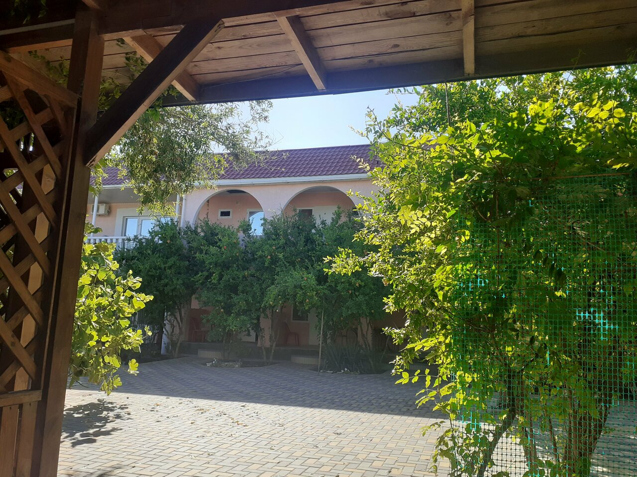 - Спокойствие, отсутствие суеты.; Вкусная еда в кафе, старания повара.; Душ в номере.; Гранаты во дворе.; Чистая, ухоженная территория.