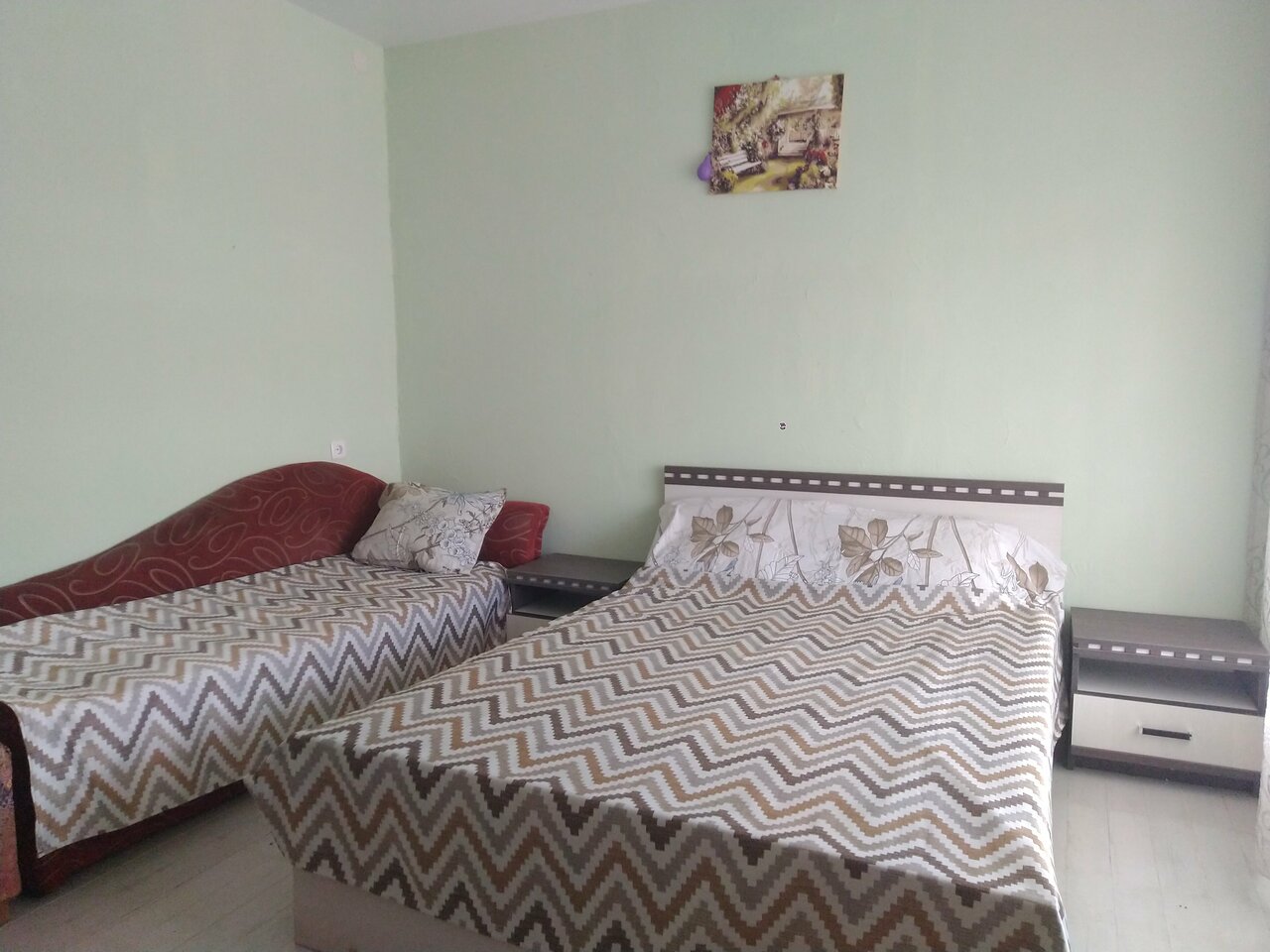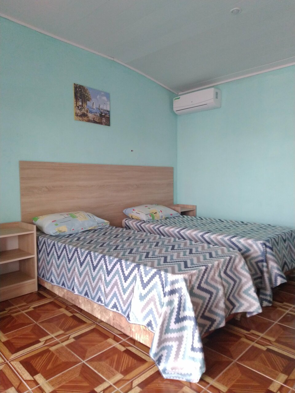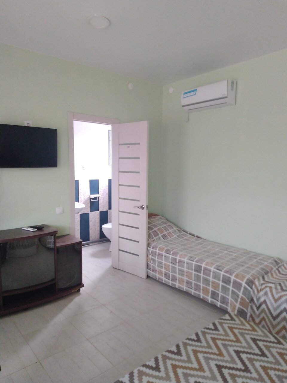 Прекрасное место для отдыха с детьми. Были большой семьёй и всем хватило места)) номер комфортный уютный, а главное чистый)) небольшая кухня (у каждой комнаты своя) находиться на улице под навесом и в этом плюс когда готовишь не пахнет едой в комнате. Расположение хорошее рядом море и песчаный пляж. Обязательно приедем сюда ещё нам очень понравилось