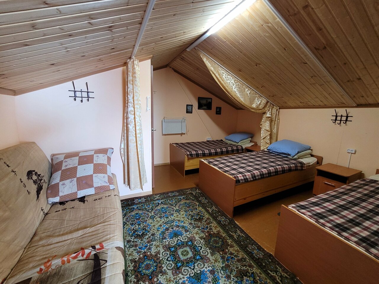 - Много спальных мест (двуспальная комната и 4 отдельные кровати).