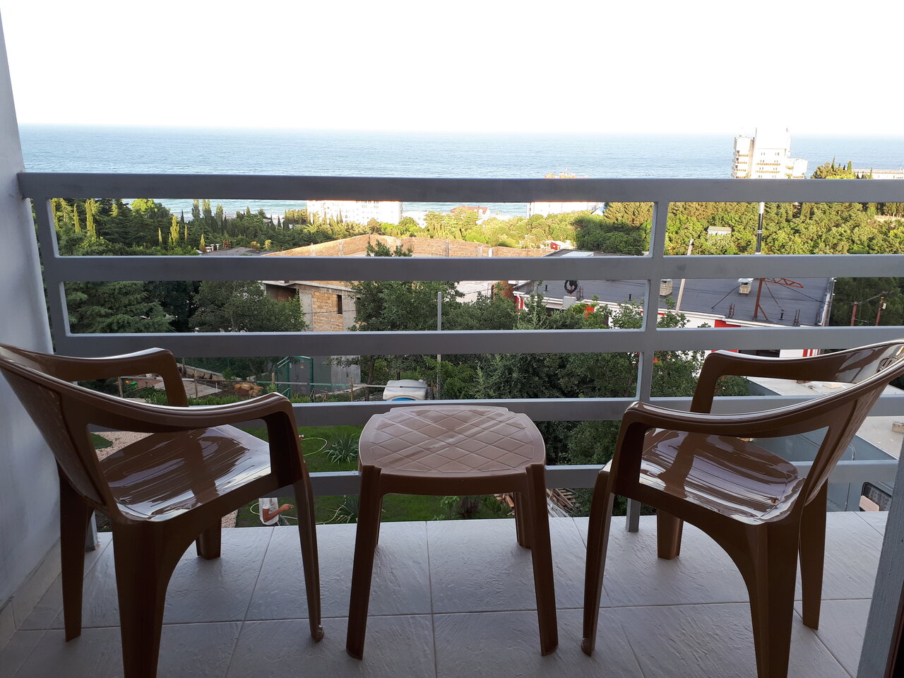 Красивый вид, много зелени, чисто в номерах, к морю нужно спускаться и подниматься, было по силам, занимает 10 минут.