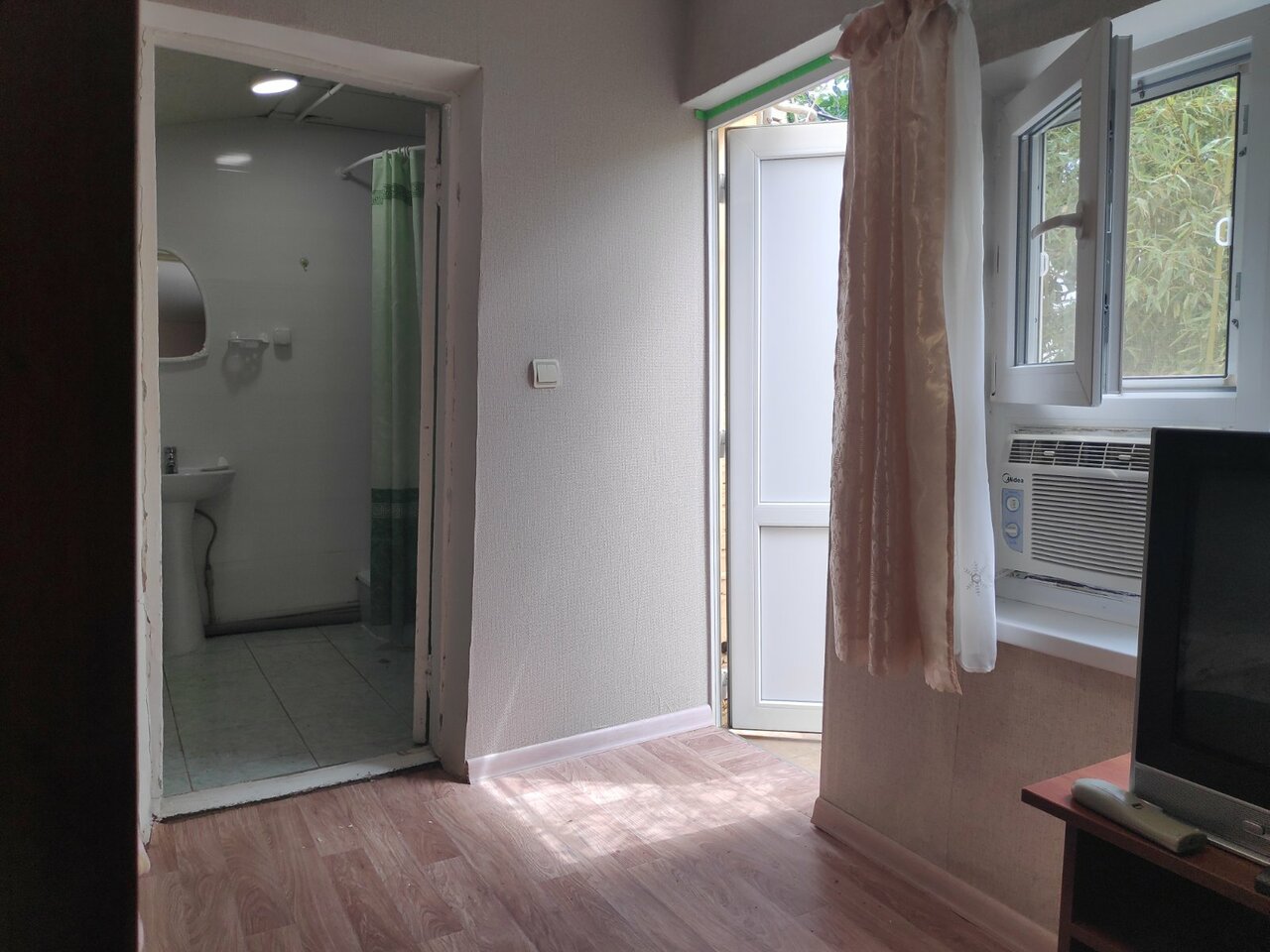 Флигель(размер 10 м.кв). Сделан из толстого природного материала «ракушка». Удобства во дворе, на три флигеля общая кухня, два холодильника, свой дворик, имеется теневая зона. В комнате: кровати, шкаф, тумбочка, телевизор, кондиционер, WI-FI.