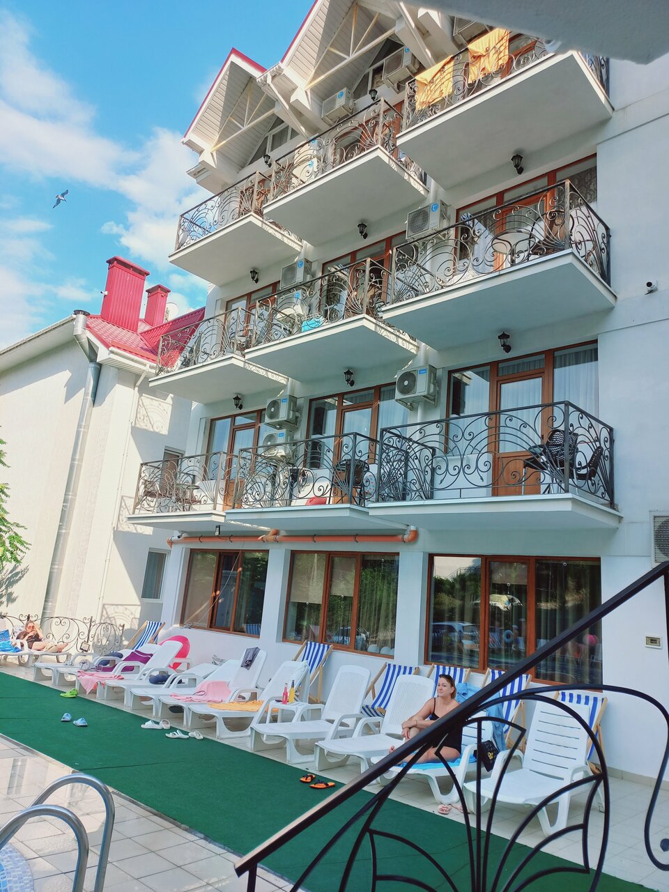 Хороший, чистый номер. Даже кусочек моря видно с балкона. Отличные завтраки и обеды. Отзывчивый персонал. Бассейн выручает, когда на море подштормливает. Такси приезжают! Единственное, что удивило это ширина пляжа, ровно на два лежака, если волны, то сворачиваться до одного ряда. Но мы поняли, что в Алуште так везде.