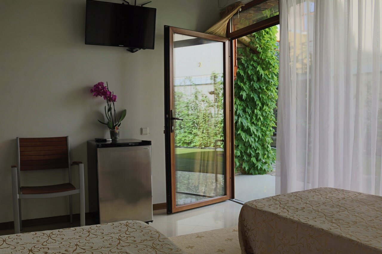 Уютные номера. В Номерах чисто. Есть WiFi, телевизор, кондиционер. Приятный бонус — хороший бассейн. Хозяева приветливые, помогают с парковкой, встречают и провожают. Большая кухня. Есть небольшой пруд с рыбками, отчего ребенок был в восторге. Рекомендую всем. Если еще раз буду в Алуште обязательно остановлюсь.