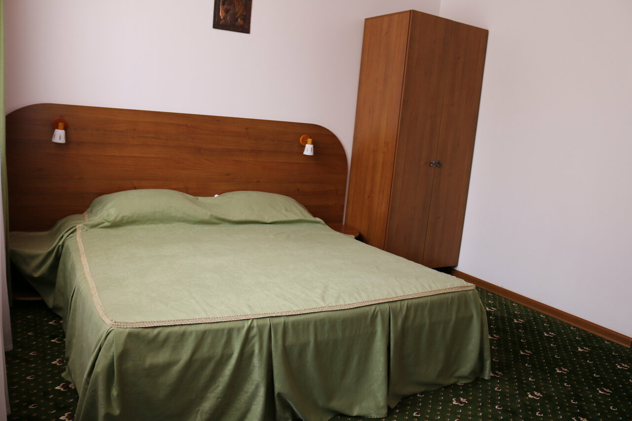 Уютный семейный номер, в котором можно разместиться 2-м взрослым и ребенку. В номере одна двухспальная кровать и одно кресло-кровать.