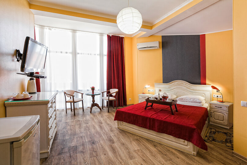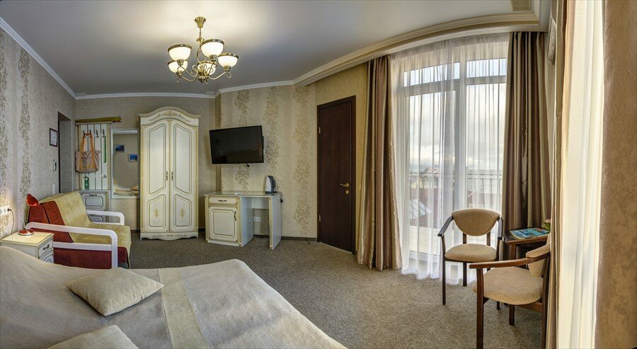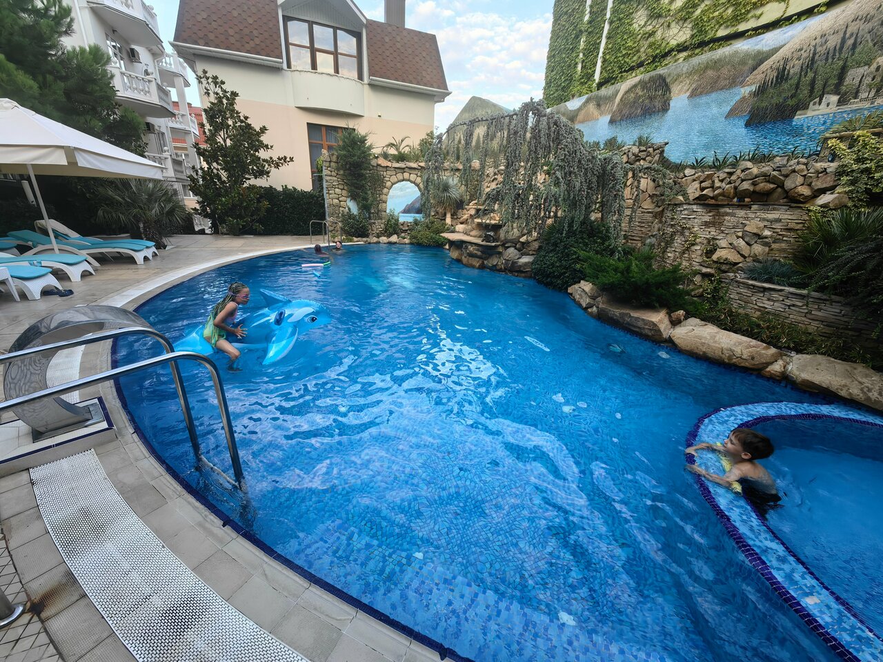 Отдыхали в августе 2018 г с 2 детьми. Очень понравилось. Чистый номер, всё продумано. В номере свежий ремонт, удобные кровати, гипоаллергенные подушки, белье белоснежное. Уборка каждый день. Чистый бассейн, вкусная еда, развлечения для детей каждый день, вечера бесплатного домашнего мороженого, вечера бесплатного барбекю от шеф-повара, вечера кино. Обедали и ужинали тоже здесь, так как качественно, вкусно и не дороже чем даже в столовых на набережной, зато безопасней. Домашний лимонад и пельмешки из детского меню особенно хотим отметить. Дочки их просили каждый день. Отдых прошел замечательно.