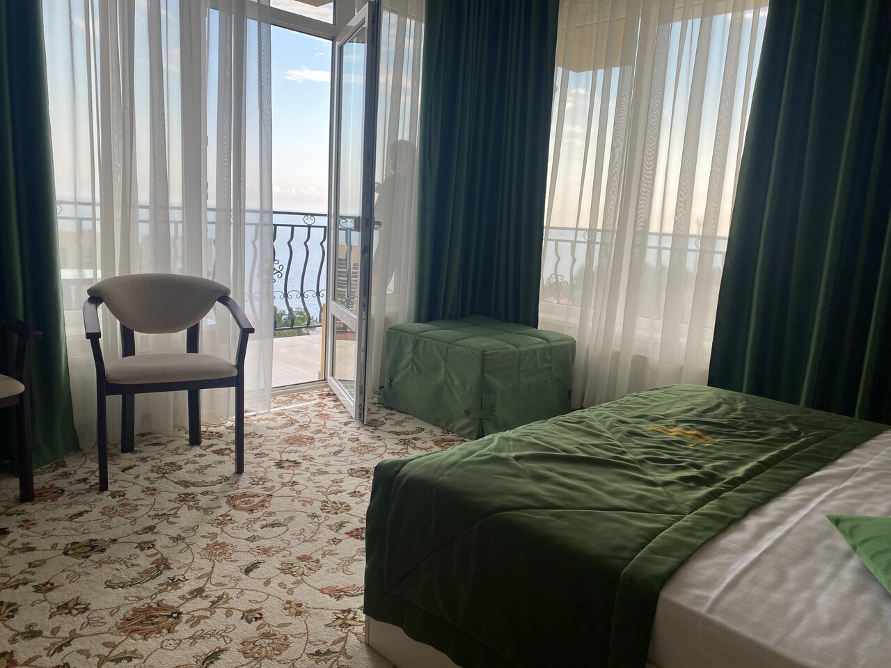 Чистые и красивые номера с видом на море. До моря 3 минуты, но обратно в горку. Развлекательная программа по выходным, вкусные блюда в ресторане, вежливый персонал.