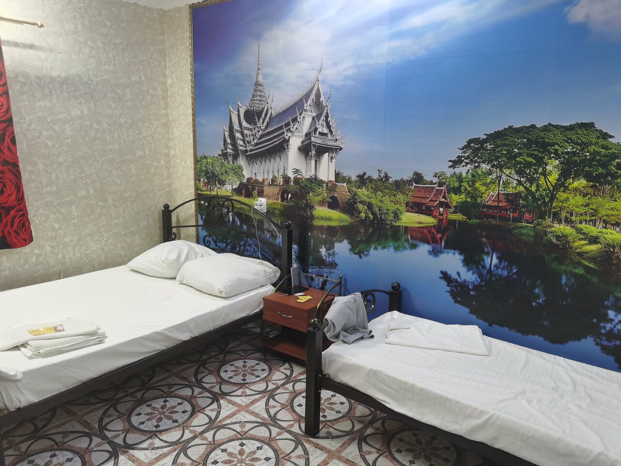 Ехали наобум, потому что ни один телефон не отвечает. Нам хватило номера переночевать. Кто приехал в 22:00 — уже не было номеров. Номер на 3м этаже,очень маленький, прямо под крышей, поэтому очень жарко, кондиционер не спасает вообще. Вешалка над столом непонятно для чего. На 4х 3 кровати (1 двуспальная и 2 односпальные) очень удобно с детьми. Ползали жуки по полу, сначала испугались что тараканы, но нет. Ползут из туалета, в который страшновато заходить. Только в обуви. Сантехника очень уставшая. Холодильник один на этаже. Мы не привередливы от слова совсем, но 3500 за такой номер это очень дорого. В столовой порции на завтрак небольшие, рисовая каша это просто рис с молоком за 100 руб. Не вкусно. Цена видимо завышена из-за бесплатного кофе/чая и одноразовых геля/мыла в номере
