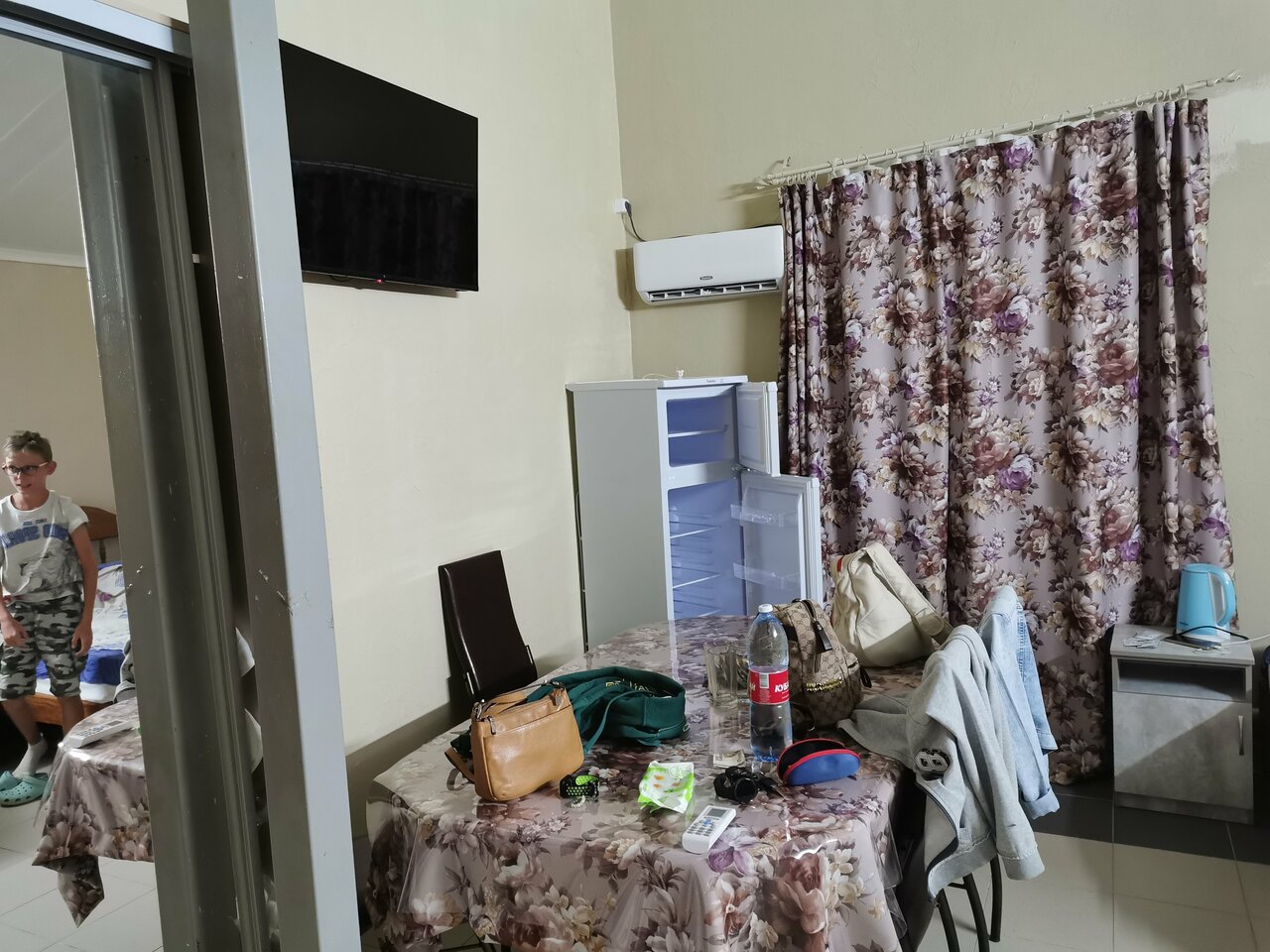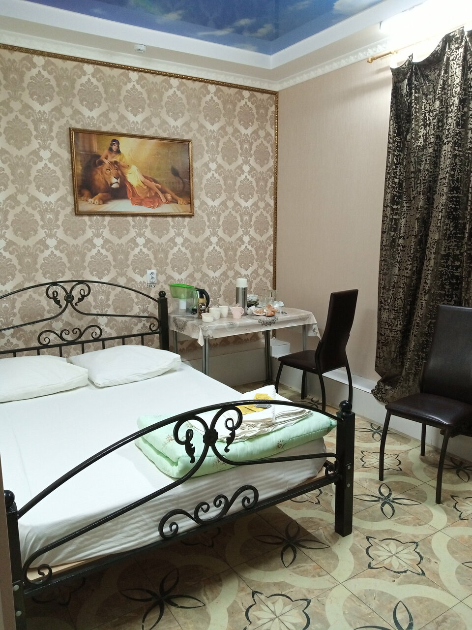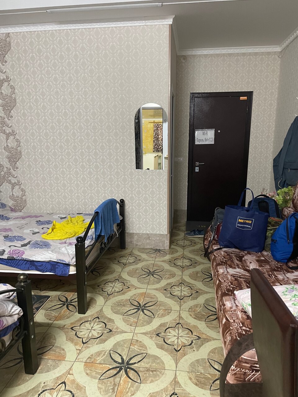 Получили большой семейный номер. Вмеру чисто, но стоит не приятный запах. Холодно, кондиционеры стоят без пультов управления, так что согреться нет возможности. Не все пододеяльники соответствуют своим одеялам (заправлять пришлось самим). Номер обошёлся, 3500 руб за ночь.