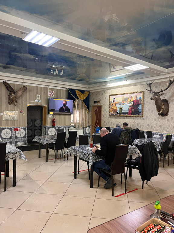 Обслуживание долгое, кухня слабовата, цены завышены, персонал неповортлив и не внимателен, в зале чисто. Интерьер симпатичный, здесь тормозят автобусы с севеоного кавказа поэтому бывает людно.