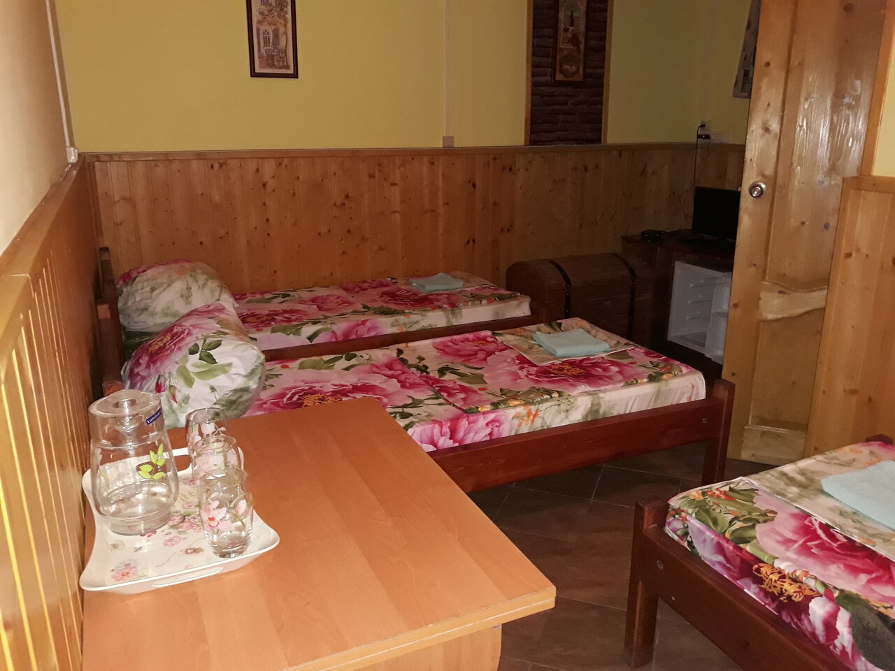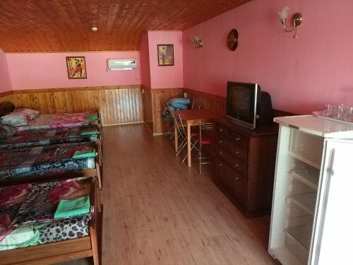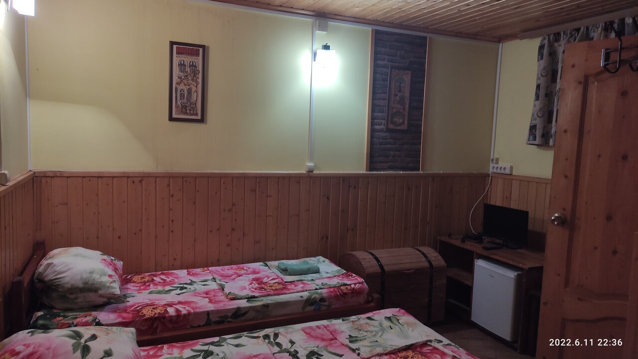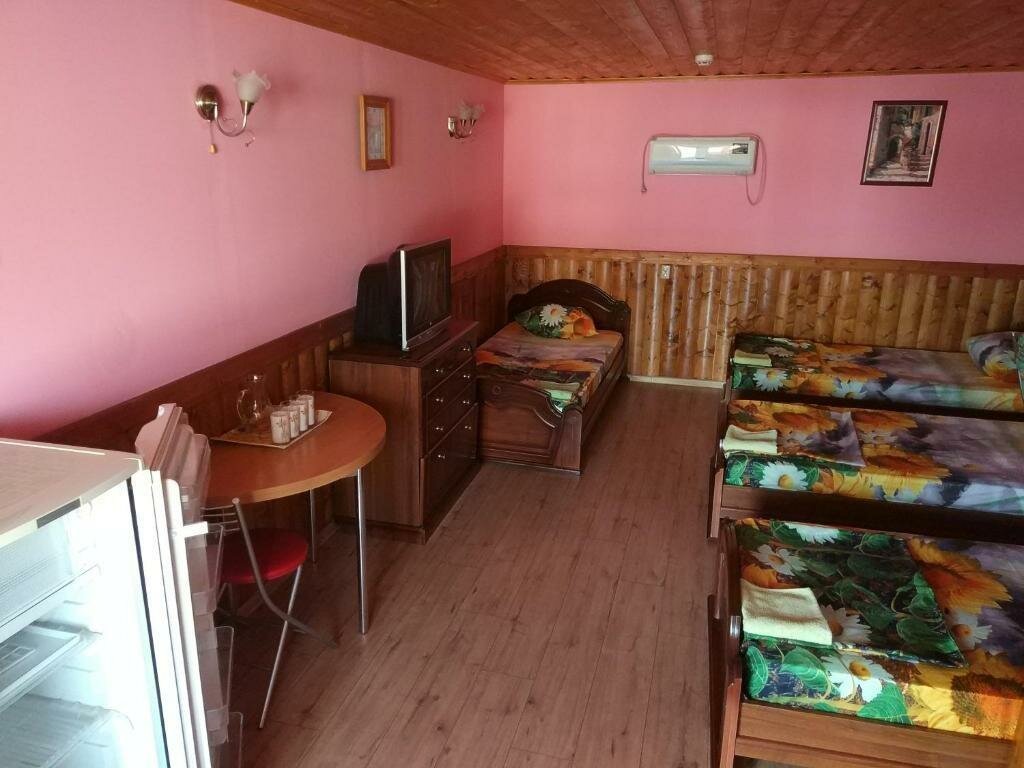Отличное место для отдыха с семьёй. Останавливались переночевать по дороге на отдых. Большой номер на 5 мест, разместились без проблем. В номере чисто и ухожено. Еть чайник, холодильник. Душевые принадлежности. Санузел чистый, убран. Питание не предусмотрено. Недостаток только одно полотенце для душа. Хотя, возможно, если бы попросили, то выдали бы ещё. Вообщем, всём рекомендую.
