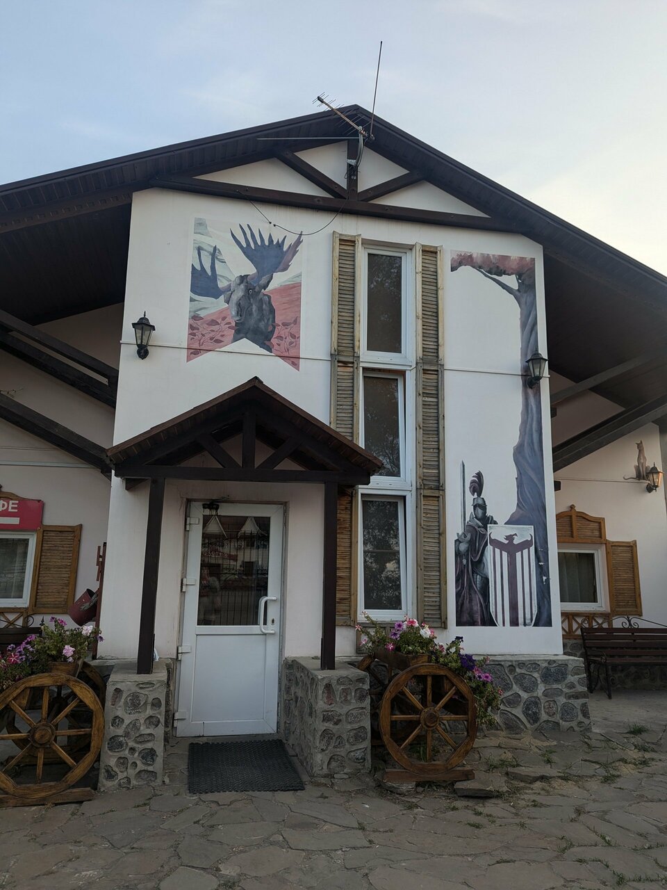Приехать, переночевать, уехать. Хорошее место, быстро заселились, помылись, поспали и утром уехали. Большой плюс, что машину можно поставить на огороженную территорию, а не бросить у дороги. В номере чисто, просто. Очень понравился деревянный стиль и росписи на стенах. Красиво. Для жизни, наверное, не очень, потому что дорога всё -таки близко, а на одну ночь отлично.