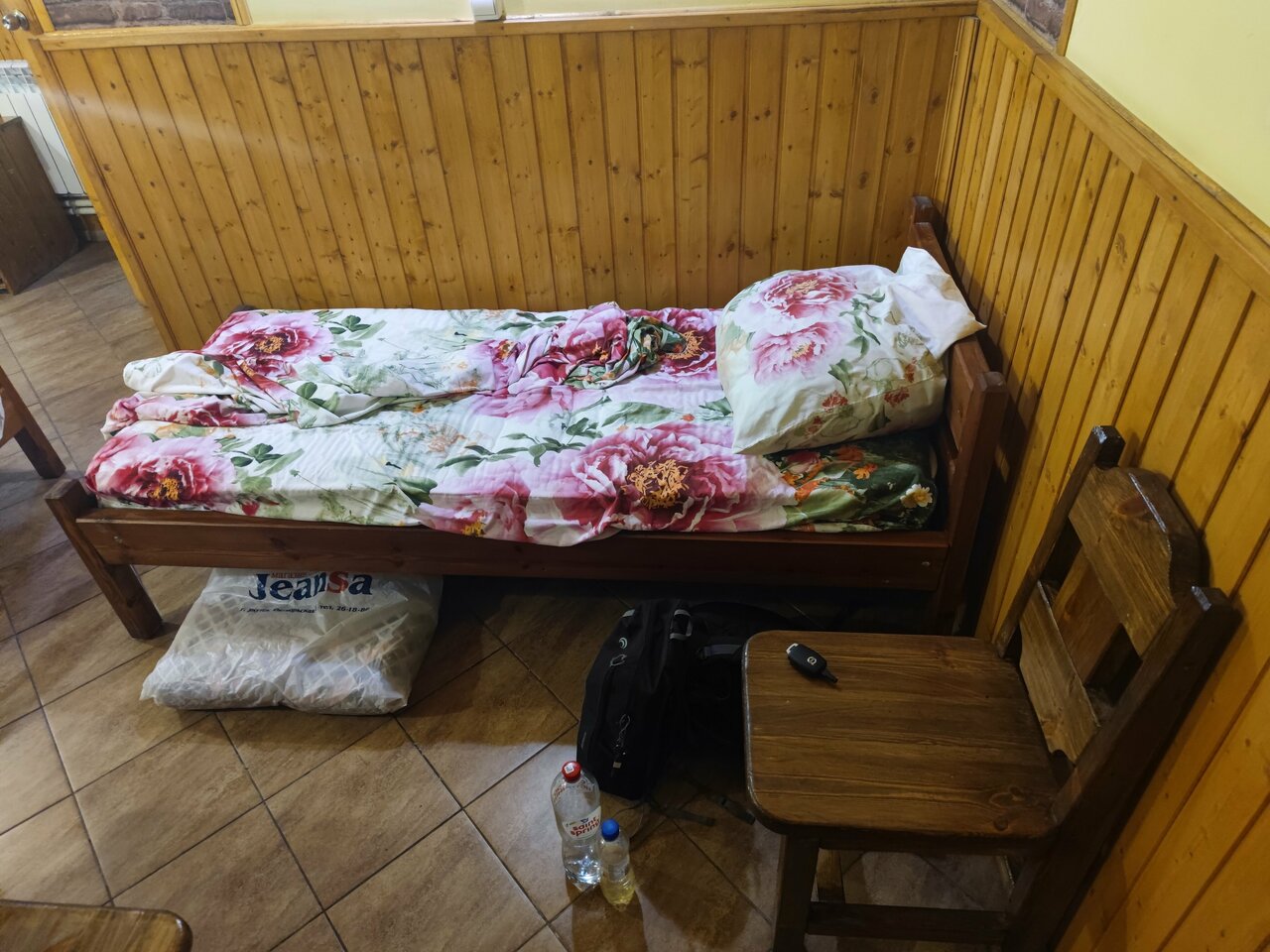 Переночевать на трассе пойдет. Ожидать много не стоит от этого места. В комнате темно, не сказать, что был чистый пол, на унитаз не сесть по-человечески, пружины в матрасах впивались в ребра, постельное — голимая синтетика, спать не приятно. В общем, такое себе место. Возвращаться не будем.