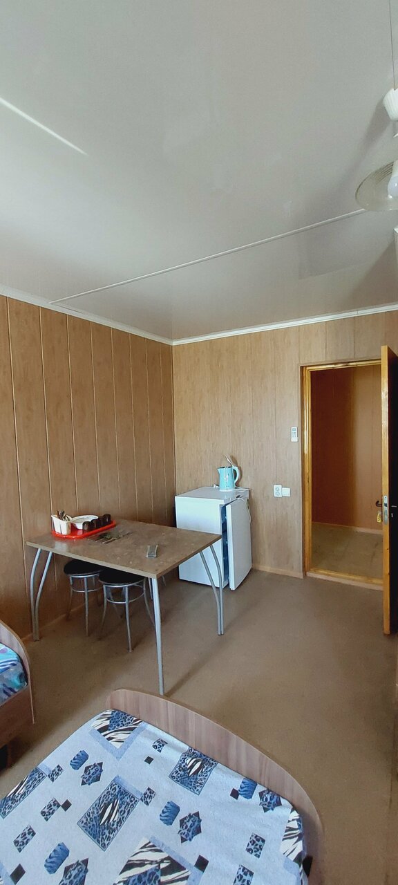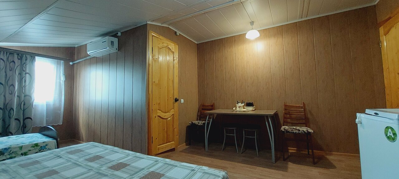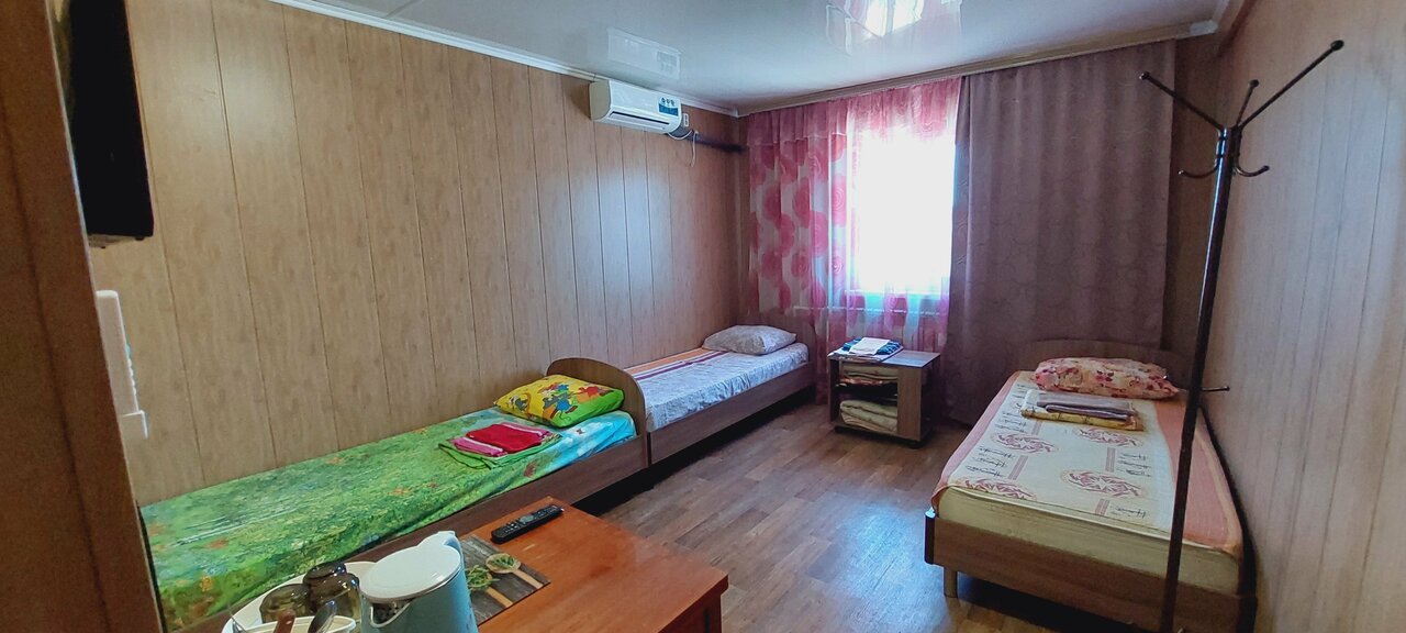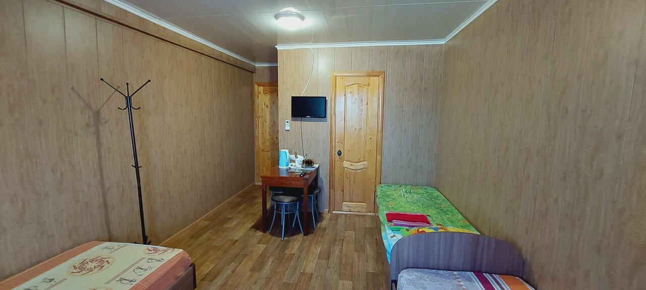 Заехали по дороге на море Позвонили за 1,5часа до прибытия В номере за 3т.р было 2 кровати односпальные, 1 двухспальная. Стол, табуретки, телевизор, чайник, холодильник, набор посуды, комплект полотенец на каждого гостя. В номере сан узел. Нас все устроило.