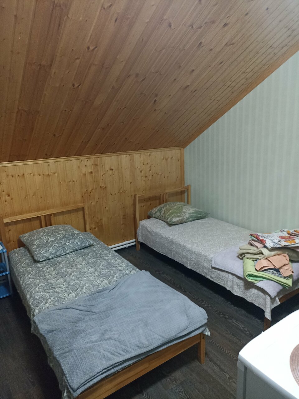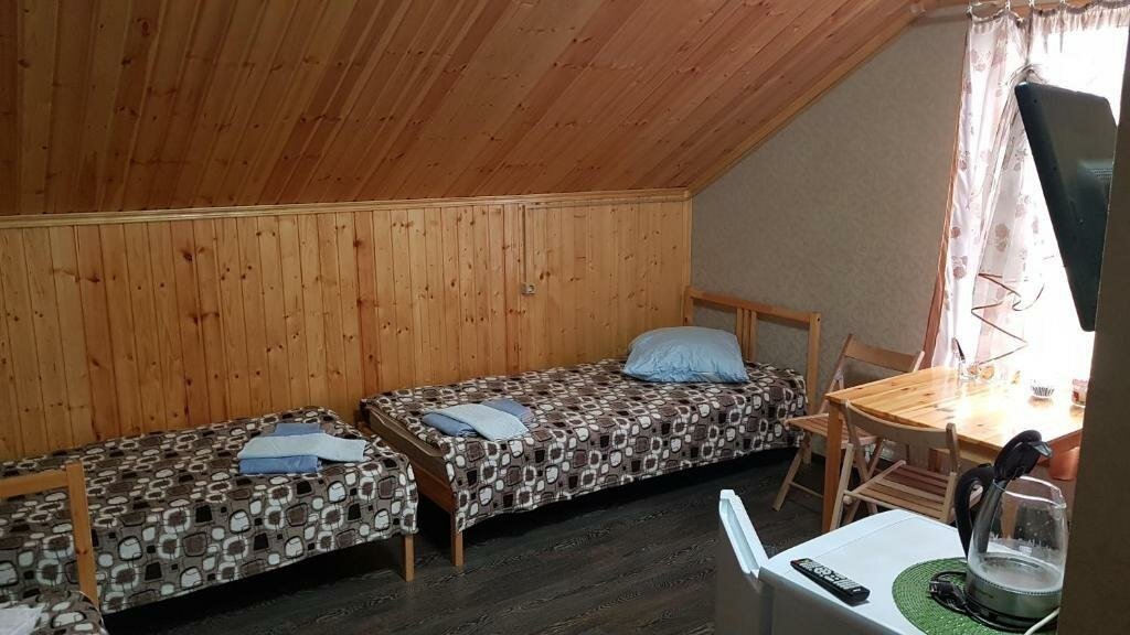 Останавливались на одну ночь по пути в Москву. Место хорошее ощущается домашний уют. В комнате полный комплект бутылка воды 5 литров и набор для чая. Кровати удобные, но немного скрипят. На каждого по два полотенца, одноразовые щетки, шампуни и губка. За свои деньги- это отличное место.