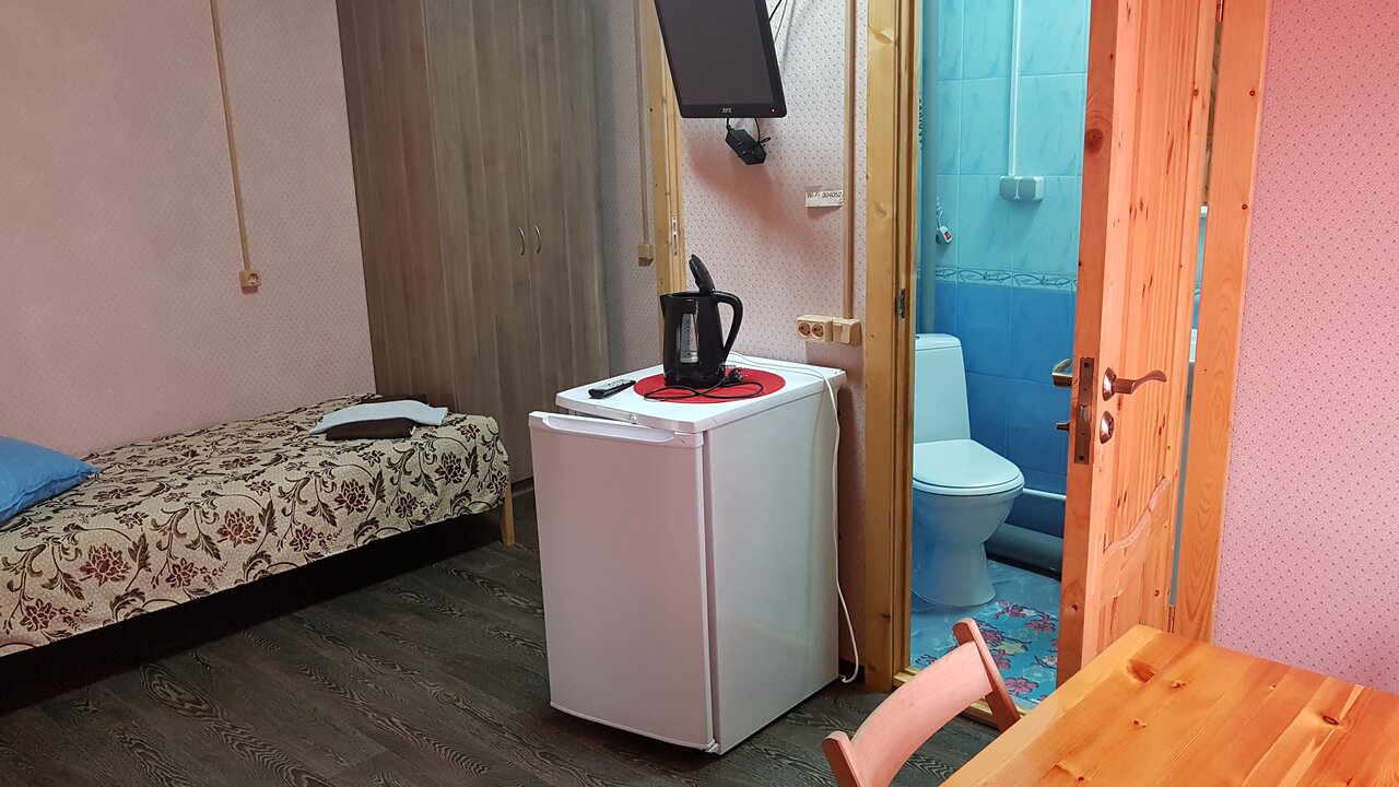 Отличный отель, в номере чисто , есть холодильник, тв , чайник , чайный набор . На 1 этаже кафе , готовят очень вкусно и не дорого.