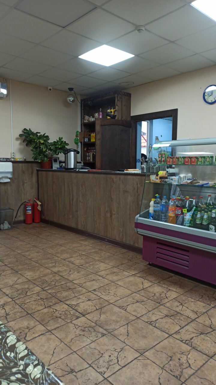 Хорошее придорожное кафе, с вежливыми аккуратными сотрудниками, приятным интерьером. Цены низкие, к примеру мой обед: суп харчо 120р, котлета куриная 60р, винегрет 50р. Вкус и качество еды мне понравилось, для такой категории — очень хорошо.