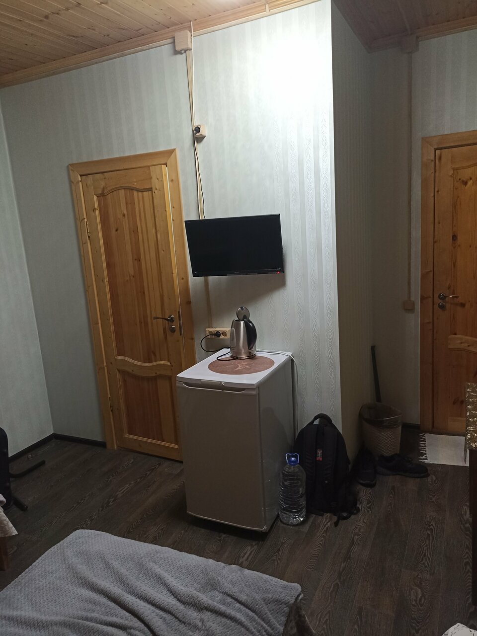 Тут все 10из 5) чисто уютно номер большой , заселили без проблем , нашли в пути позвонили и вуаля) приняли с двумя пёселями (+200р) за все 1900 , но за эти 1900 тут просто санаторий накормили напоили спать уложили . Полотенца на двоих в комплекте , в душевой все есть ( гель , шампунь , щетки ,мочалка ) , одеяла есть. Чай , чашки , чайник , 5 литровка воды ( вообще просто огромное спасибо , очень продумано), холодильник , конфеты , телевизор вай фай , на этаже микроволновая печь . Боооже это просто рай для путников на одну ночь . Внизу в кафе кухня очень вкусная завтрак с 8. Мне даже в 21.30 яичницу с сосиской пожарили . Есть парковка на несколько машин .Хозяину данного места большой респект⭐️⭐️⭐️⭐️⭐️⭐️⭐️⭐️⭐️⭐️