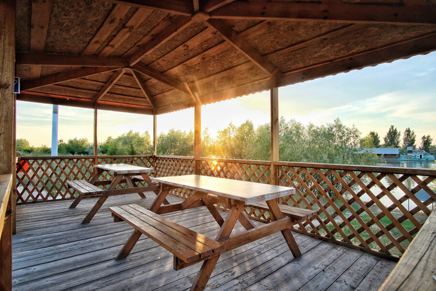 - Вкусное питание (особенно рыбные блюда).; Возможность аренды лодок с мотором.; Возможность организации корпоративов и мероприятий.; Отсутствие посторонних людей (уединённость).; Заморозка пойманной рыбы.