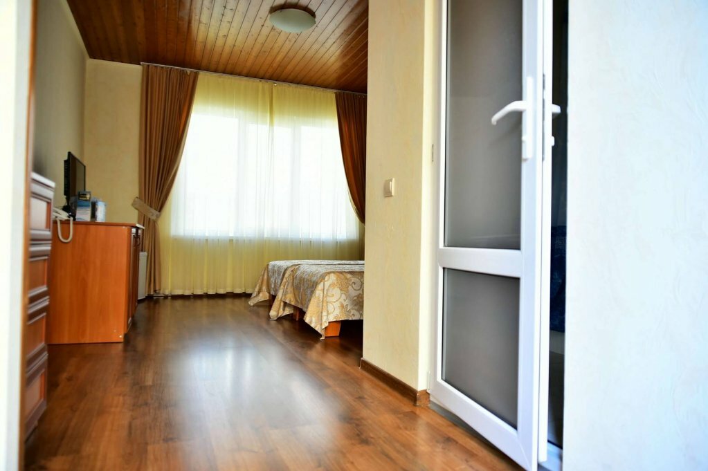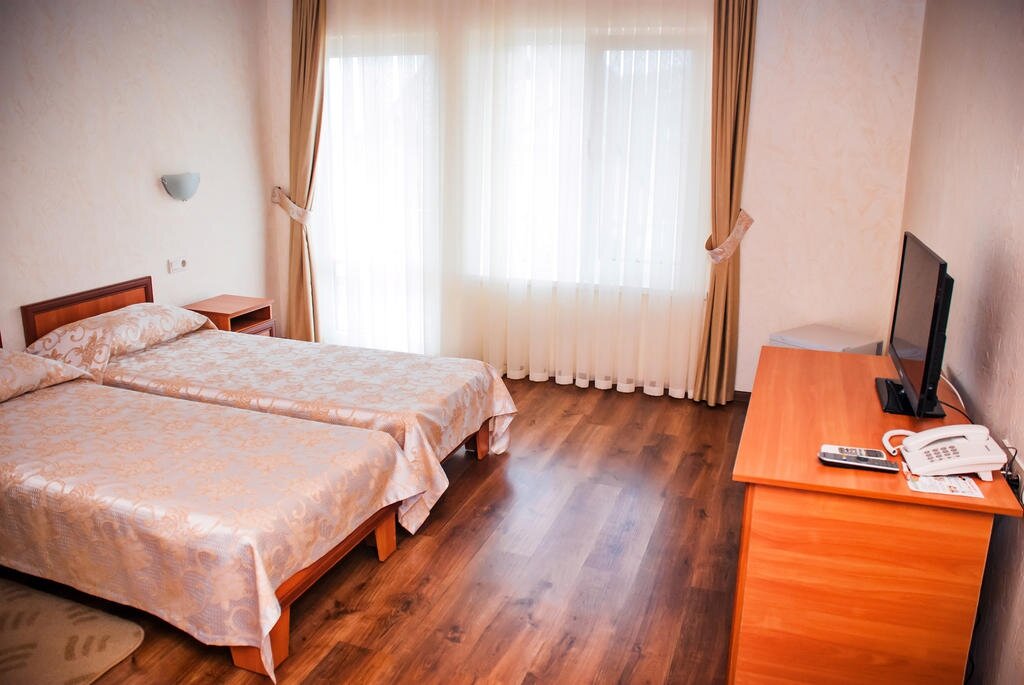Гостиница находится на горе,до моря метров 600,людям у кого какие либо проблемы с опорно-двигательным аппаратом или же с дыхательной системой подняться с моря обратно в гостиницу будет проблематично либо идти в обход! Влажную уборку номеров производят не регулярно в последние 2 дня до нашего отъезда номер не мыли вообще,полотенца меняются раз в 3 дня. Были на системе только завтраки шведский стол: еда вкусная,но однотипная изо дня в день!из личного опыта если обедать за деньги в кафе гостиницы выходит дорого на набережной получится подешевле! Из плюсов стоит отметить чистую и очень озеленённую территорию,вежливый персонал и прекраснейший мед.работник прикреплённый к отелю (вынуждены были обратиться из-за травмы). А в остальном что за каждый свой шаг приходится платить даже за чайник (250руб)сетовать бессмыслено — это Россия!