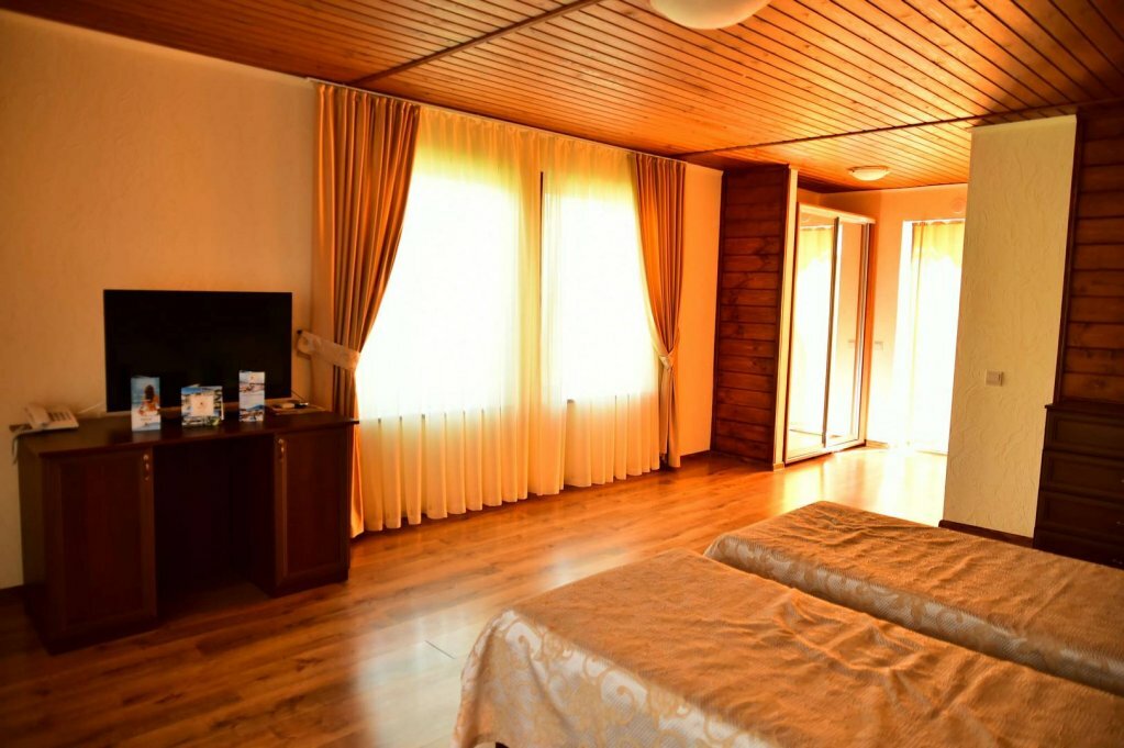 Очень понравилось все: уютный, чистый номер. . Заботливые, вежливые люди. Вкусная еда. Есть отдельное детское меню. Повара могут приготовить для ребёнка индивидуально. Например, как нашему ребёнку, не молочную кашу. Очень красивая территория. До пляжа немного далековато и спуск с горы. Но это не испортило нам впечатления. Место тихое. Рекомендую. Для детей есть площадки с качелями и горкой. Вообщем, приезжайте, не пожалеете.