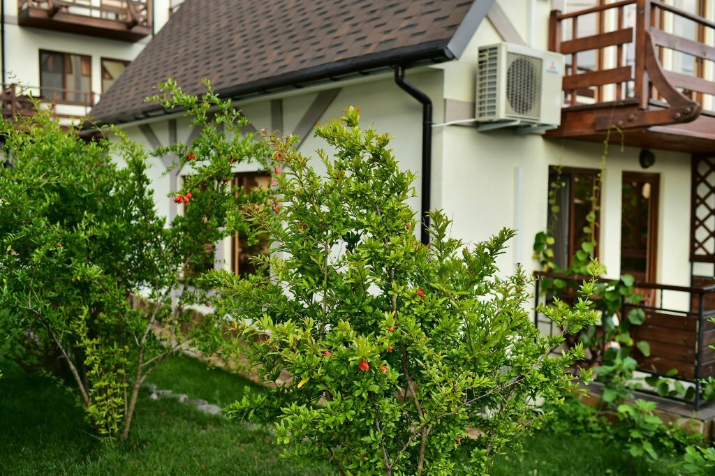 - Разнообразный и вкусный завтрак.; Вежливый и улыбчивый персонал.; Отзывчивый и дружелюбный персонал.; Наличие фруктовых деревьев на территории.; Красивая и ухоженная территория.