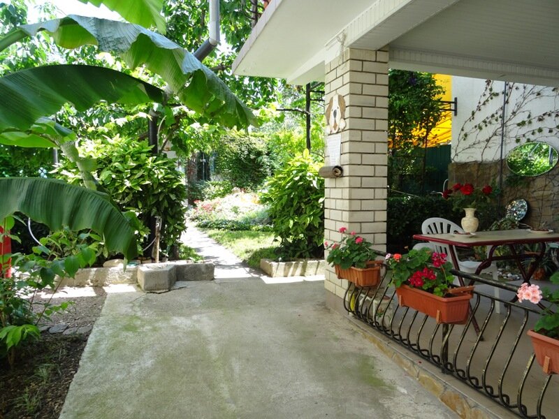 Уютные комнаты, зелёный дворик, маленький пруд с черепашками и рыбками. Тишина, нет рядом дороги. Хороший вид на горы. Не далеко магазины и рынок. На рынке можно купить хорошее мясо для шашлыка. До моря 5 — 10 минут прогулочные шагом, если идти вдоль маленьких магазинов где торгуют пляжными принадлежности, пицей, вином, чебуреками и др., то можно выйте к небольшим кафешкам, где можно пообедать, на набережной. В общем мне понравилось.