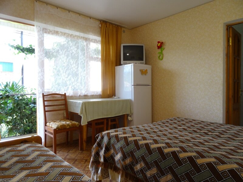 Очень приветливая хозяйка Светлана. Очень уютный дворик:весь в зелени, ухоженный. Нам предложили два номера на выбор. Мы ездим с маленькой собачкой, так для нашего удобства нам большой номер оставили. Удобные кухни(есть вся необходимая утварь для готовки). До пляжа минут 10 прогулочные шагом. Машина наша стояла во дворе под крышей, скрытая от солнца. Вообщем сплошные плюсы