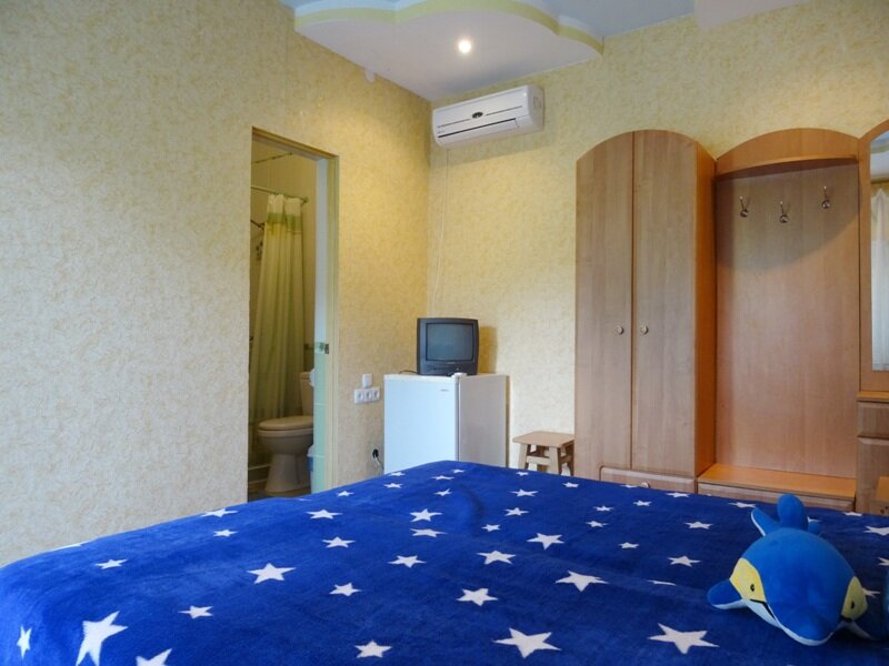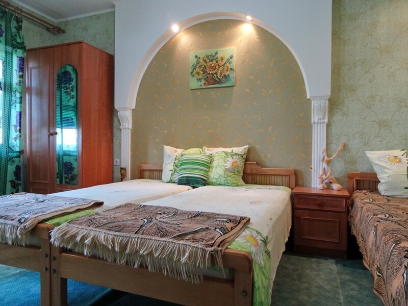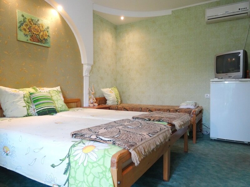 Хозяйка — лучшая!!! Приняла нас на одну ночь без вопросов (для тех, кто не в курсе — в Крыму меньше, чем на 3 дня снять очень не просто). Приняла нас — семью с двумя детьми 4 и 6 лет. Даже еще и бесплатно накормила, т. к. поздно приехали, для нас это вообще впервые… На территории сказочная красота и чистота в номерах.