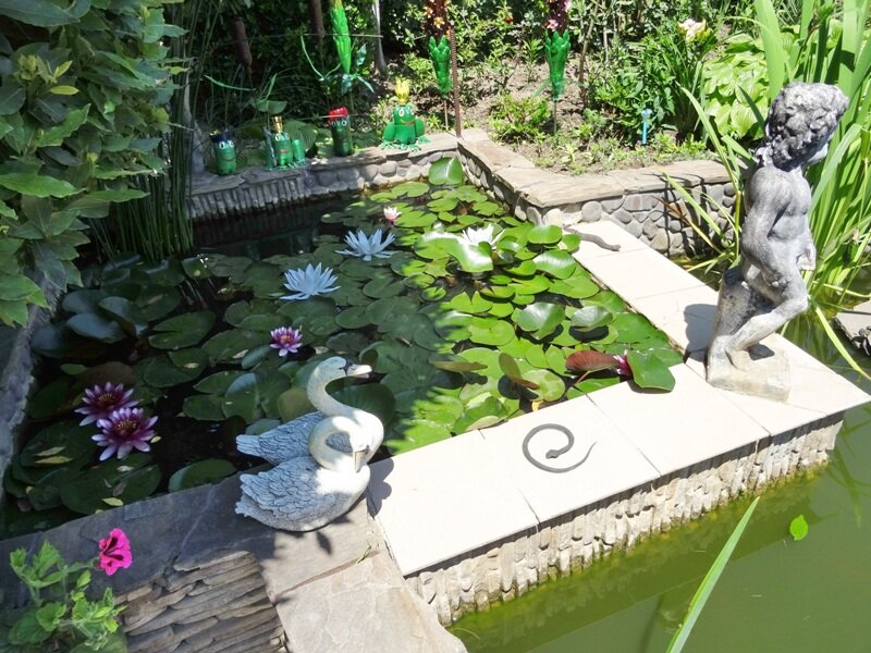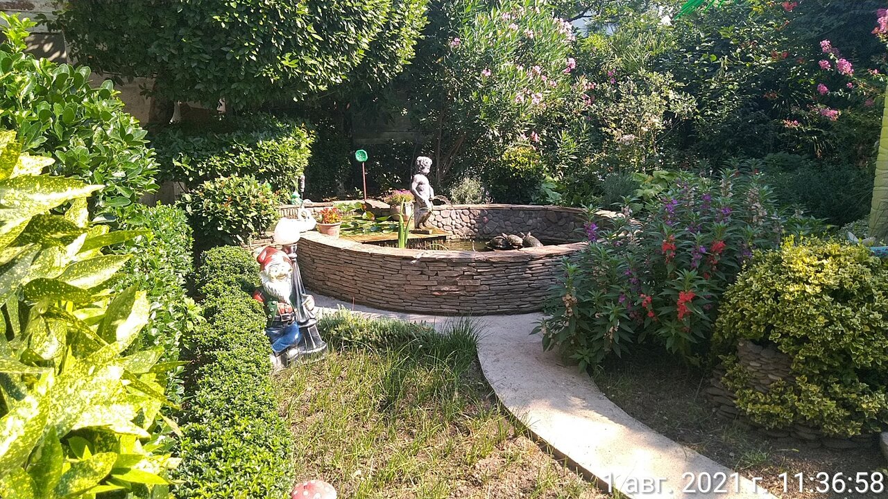 - Красивый двор с фонтаном (черепахи, рыбки).
