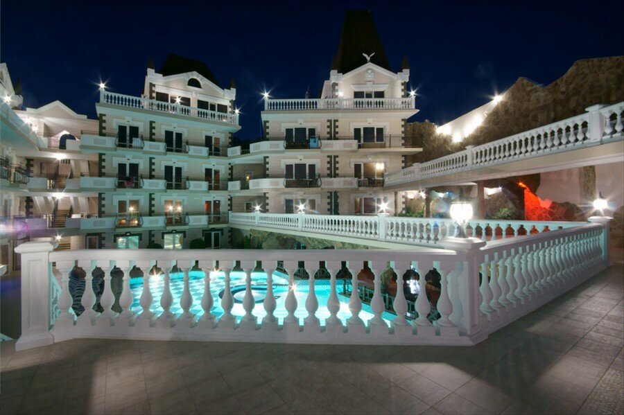 - Чистота во всем отеле.; Виды на море и горы.; Комфортные номера.; Красивая стилизация отеля (под замок).; Хорошая анимация (отдельно отмечен аниматор Дмитрий).
