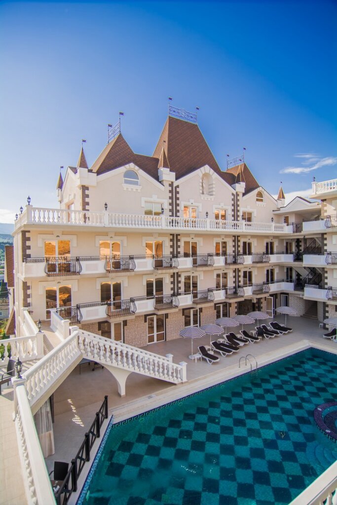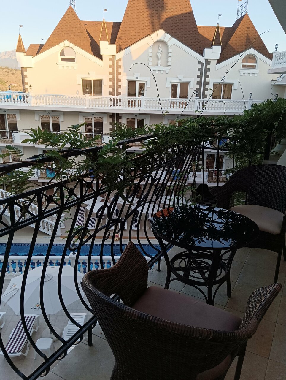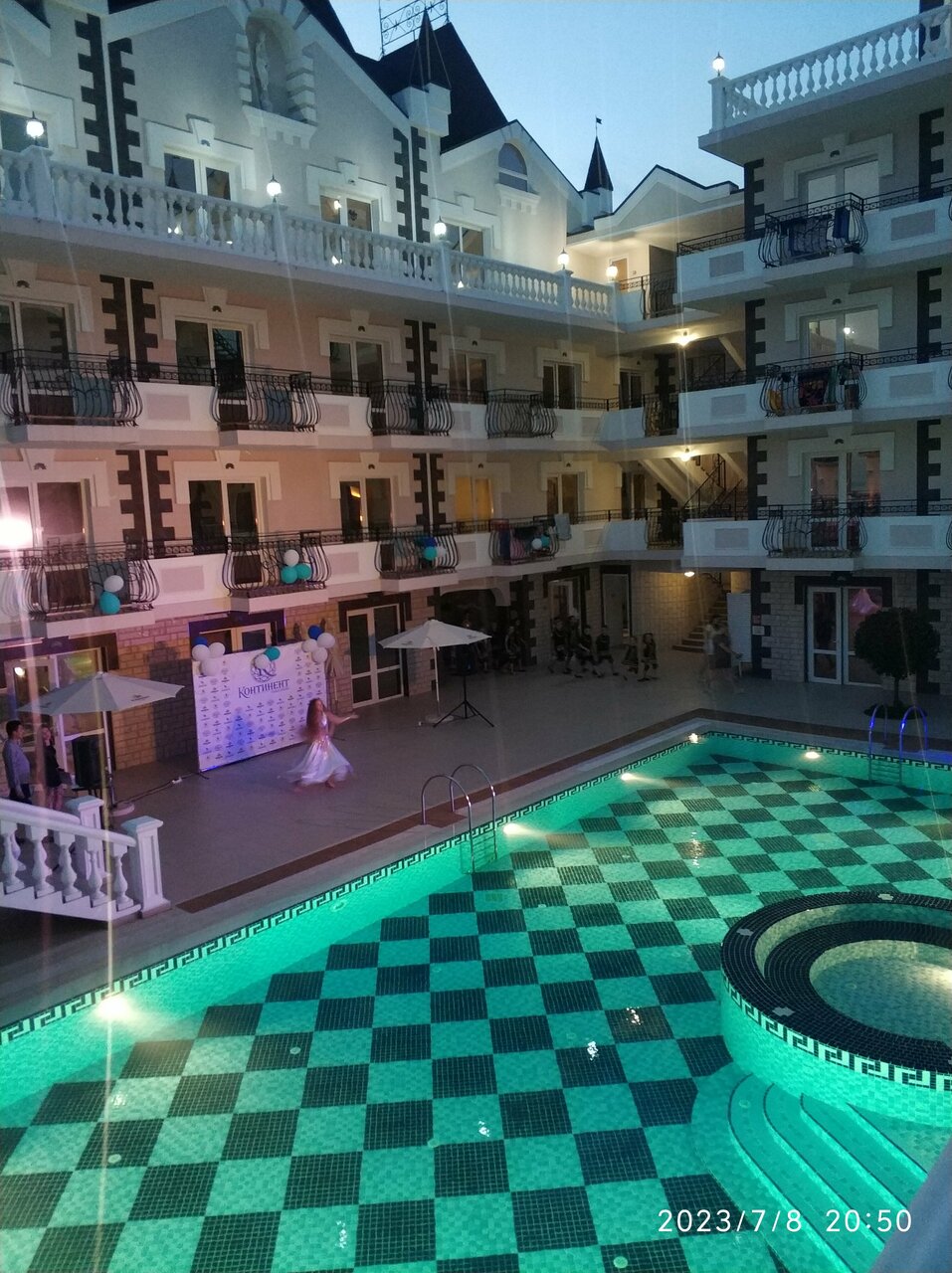 Отличное место! Случайно наткнулись на отзыв о ‘Камелоте’ и решили отдохнуть здесь. Отель красивый, стилизованный под замок. Уютные номера, чистые, хорошее бельё. Уборка каждый день. Бассейн большой и чистый. По периметру бассейна ресторан. Питание качественное. Персонал дружелюбный. Всё вопросы решаются моментально. Номер был с верандой. Вид бомбический на море и горы. С удовольствием вернёмся сюда ещё.