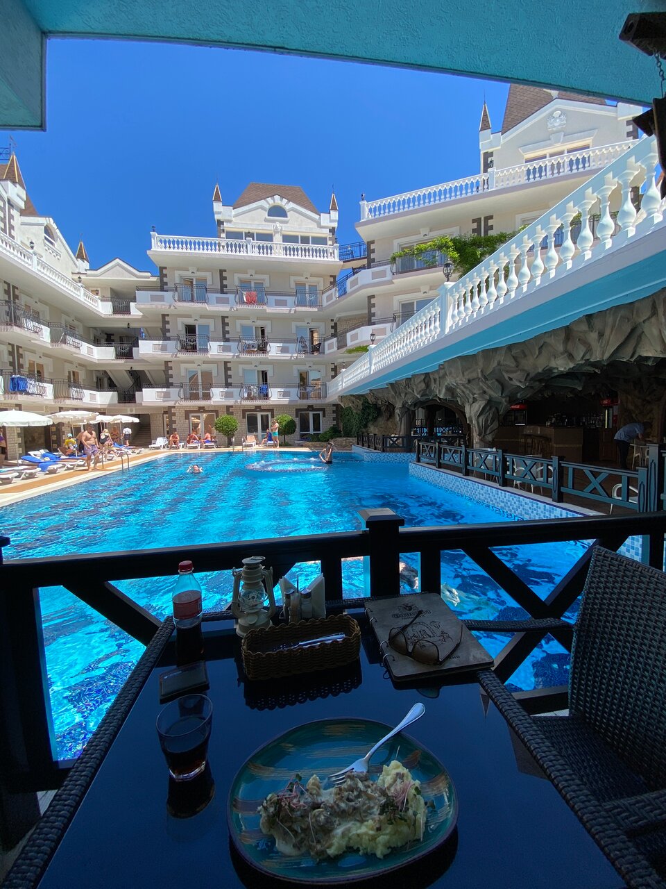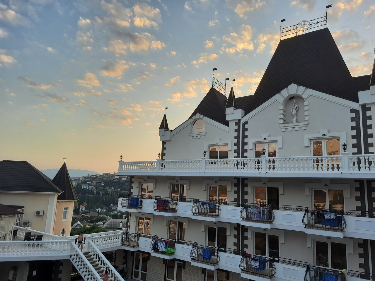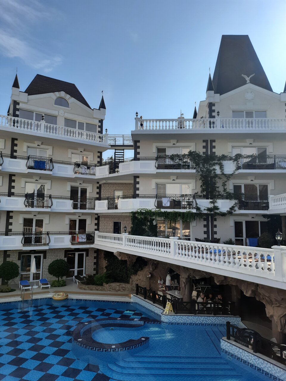 Отличное место! Случайно наткнулись на отзыв о ‘Камелоте’ и решили отдохнуть здесь. Отель красивый, стилизованный под замок. Уютные номера, чистые, хорошее бельё. Уборка каждый день. Бассейн большой и чистый. По периметру бассейна ресторан. Питание качественное. Персонал дружелюбный. Всё вопросы решаются моментально. Номер был с верандой. Вид бомбический на море и горы. С удовольствием вернёмся сюда ещё.