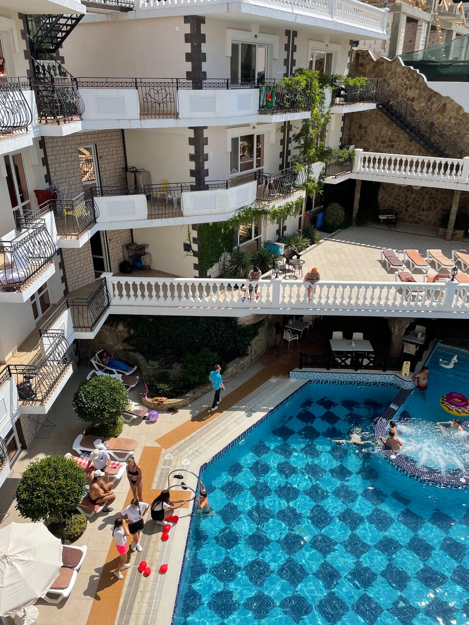 Интересный отель. Ребенок был в восторге! Бассейн под боком, 5 минут до моря. Беоег моря конечно галечный, так себе, но можно ездить на соседние пляжи. Место уникальное своей природой. Рядом церковь-маяк, рестораны, заправка. Виды из отеля сказочные! Внутри фотографии получаются здоровские! Единственное — старайтесь не брать номера с выходом к бассейну — очень влажность высокая и нет окон для проветривания.