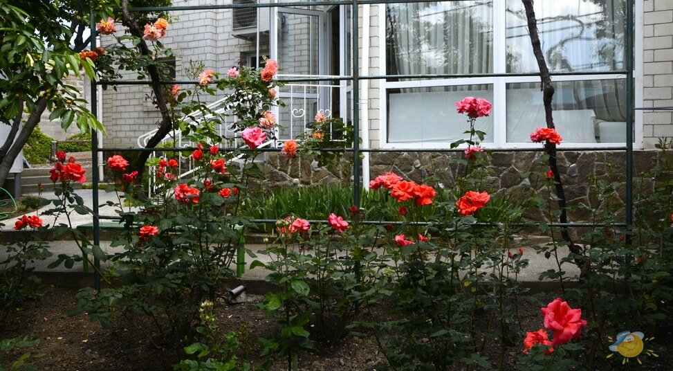 - Удачное месторасположение (рядом парк, близко до моря).; Красивая растительность во дворе (пальмы, гранаты).; Наличие стоянки для авто.; Хорошие впечатления от отдыха (некоторые гости возвращаются ежегодно).; Большая, ухоженная территория.