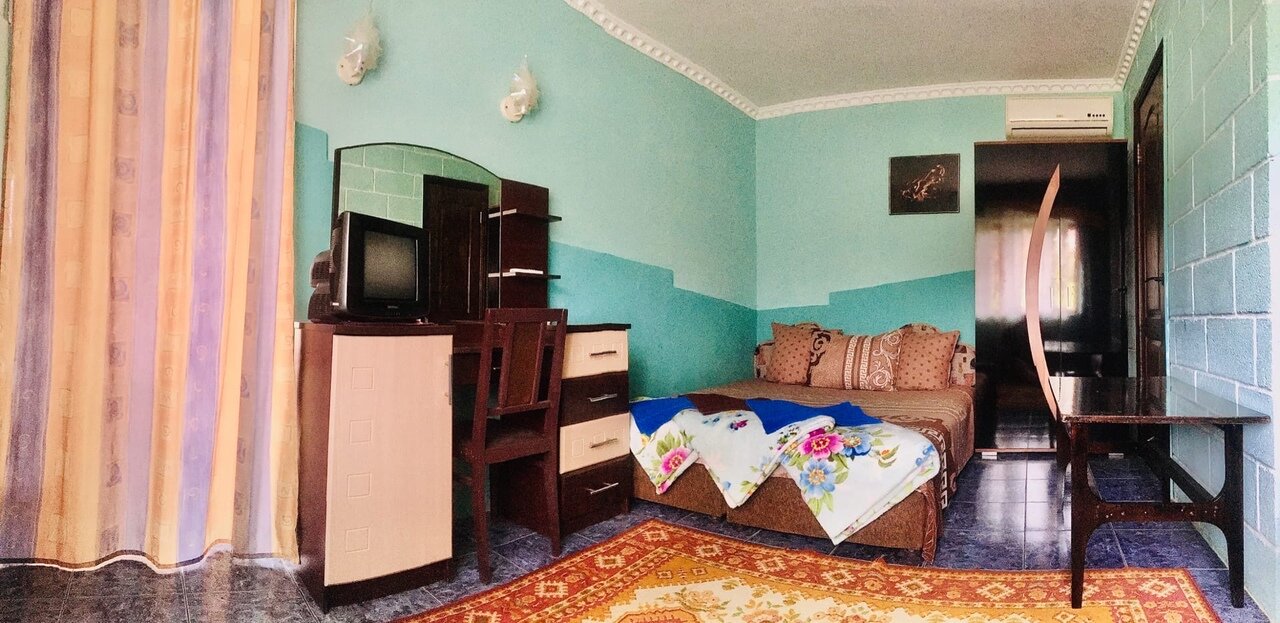 Отдыхали в июле 2020 г.. Приехали повторно, до этого в 2014 г. В номере чисто, ничего лишнего, 2-х комнатный, что очень удобно с детьми. Удобства в номере, имеется кухня со всем необходимым для готовки. Двор очень уютный и зеленый, множество разных деревьев и цветов. До пляжа около 10 минут через парк заброшенного санатория, пляж галечный. Очень хотелось бы отметить радушие хозяев и кулинарный талант Сергея. Его плов изумителен! Ездили с ним на рыбалку, дети в восторге. Наловили рыбы и посмотрели на дельфинов. Все очень понравилось, еще вернемся!