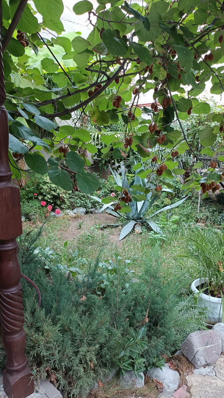 - Красивый сад с экзотическими растениями (гранат, инжир, киви, розы).