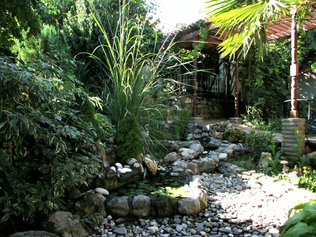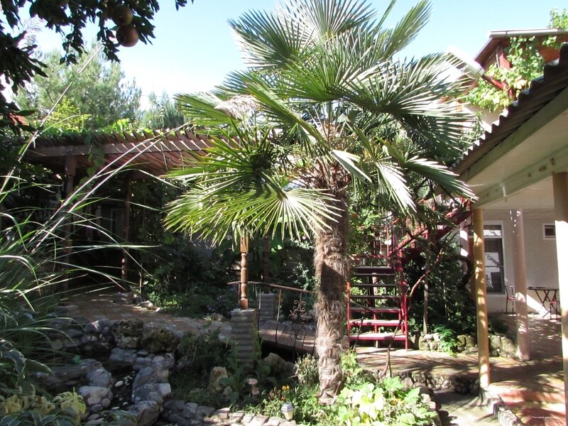 Это изумительное, красивейшее место. Отдыхали здесь уже третий раз. Гостиница просто утопает в зелени и вся территория как дивный райский сад. Тут растут пальмы, гранат, инжир, киви, какие-то экзотические растения и изумительно пахнущие розы. Уютная веранда, беседка, фонтанчик и маленький пруд с черепашками и рыбками. Уютные, чистые номера и всё для отдыха. Рядом есть магазинчики, кафе и сквер с фонтаном и новой детской площадкой. До моря всего лишь 7 минут. Хозяева Татьяна и Виктор- это душа гостиницы. Большая, открытая, добрая и отзывчивая душа. Маленькая дочка их очень полюбила. Спасибо за наш отпуск! Спасибо за Ваше время! За гостепреимность и просто доброе сердце! Уезжали как от родных. Мы обязательно ещё приедем.